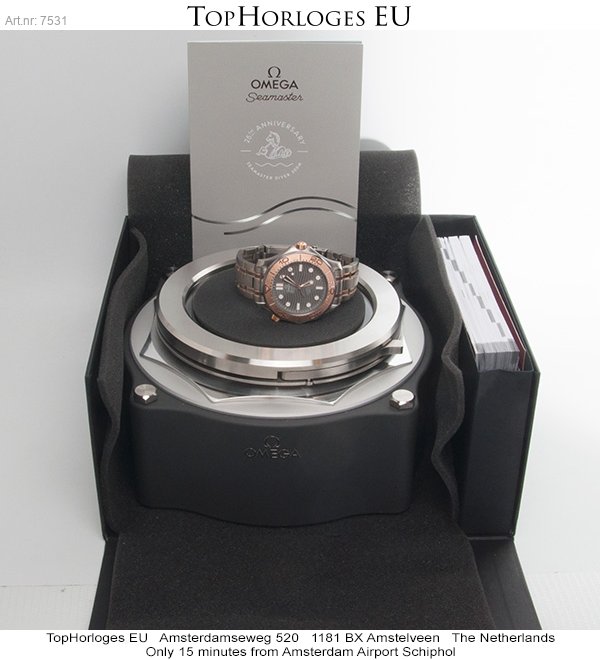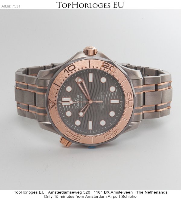 Een ongedragen gelimiteerde versie van de Omega Seamaster Diver. Deze titanium met rozegouden uitvoering is gekocht in 2020 en compleet met doos en papieren (2500 stuks)
