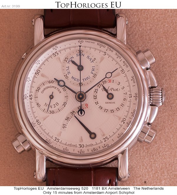 Een zeer mooie, weinig gedragen stalen Paul Picot Technicum Rattrapante. Dit prachtig stukje Zwitserse techniek is compleet met doos, papieren en een extra stalen band.