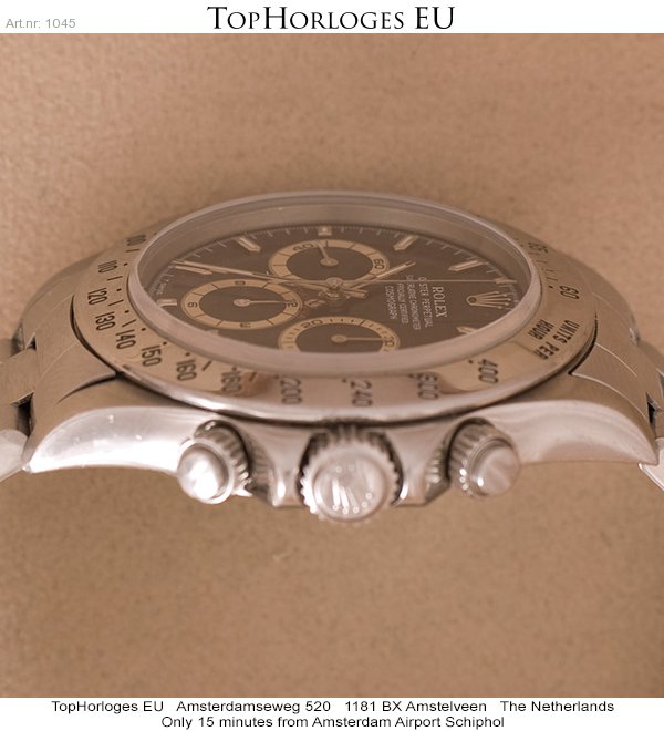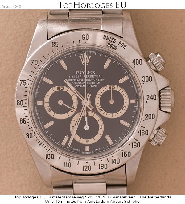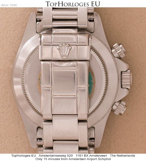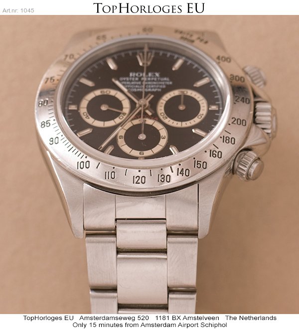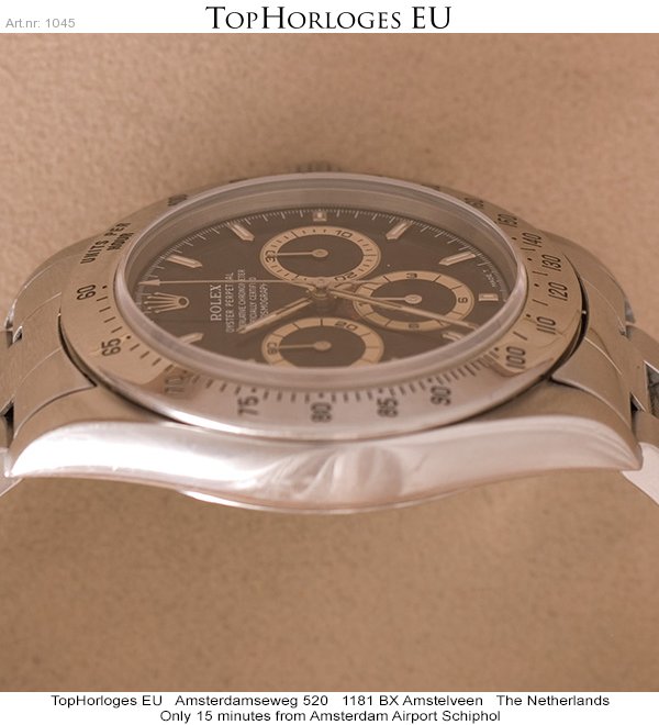 Een stalen Rolex Daytona in orginele staat. Deze uitvoering is voorzien van het gewilde "Zenith" uurwerk. (Jaarletter T 1997)