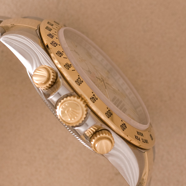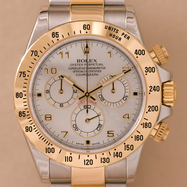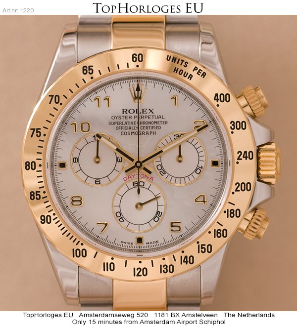 Een zeer mooie, haast niet gedragen goud - stalen Rolex Daytona met parelmoeren wijzerplaat.