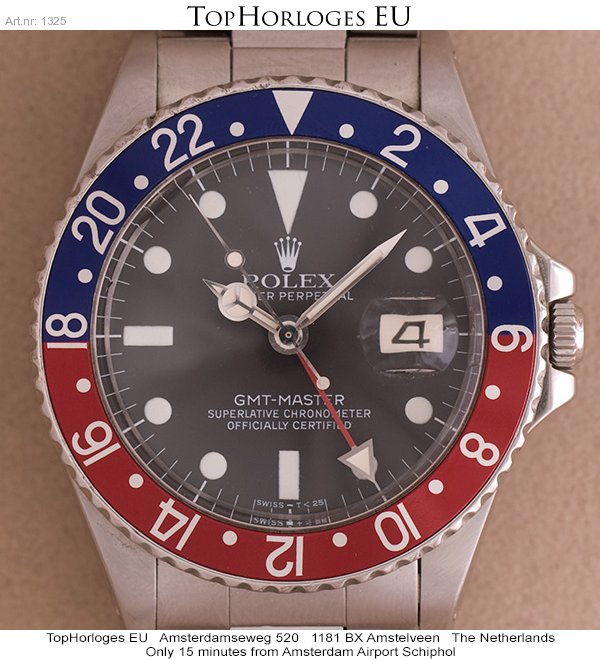 Een zeer mooie stalen "vintage" Rolex Gmt Master. Deze 1675 is compleet gerestaureerd .