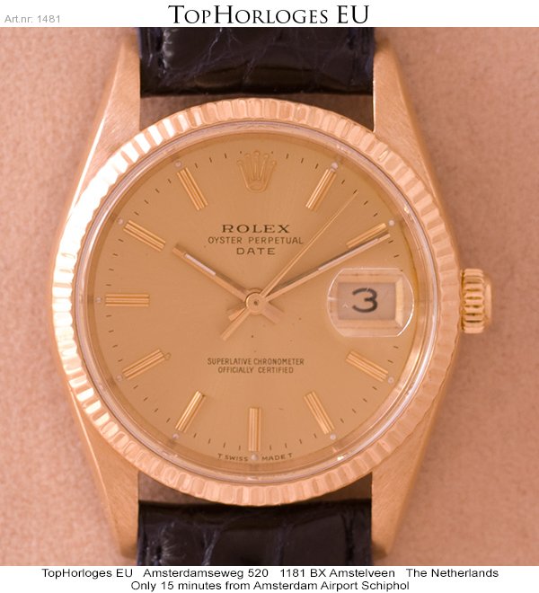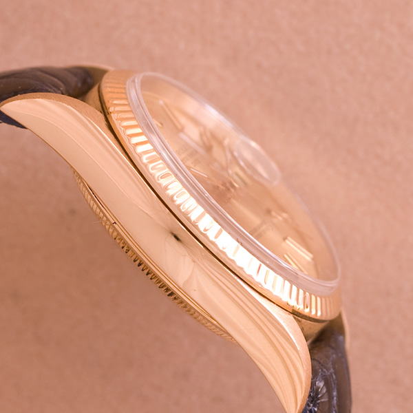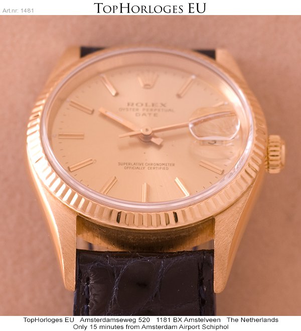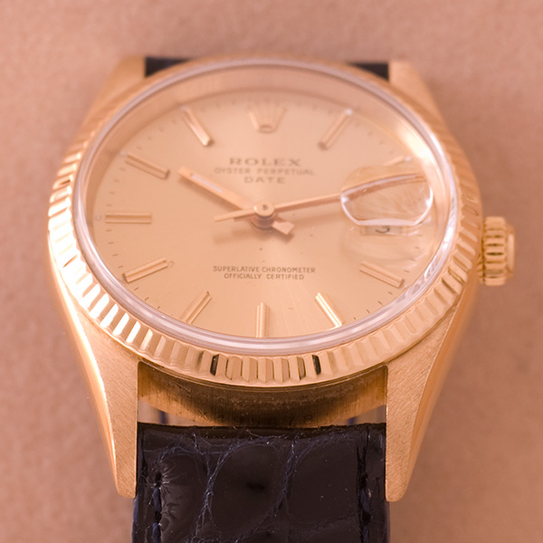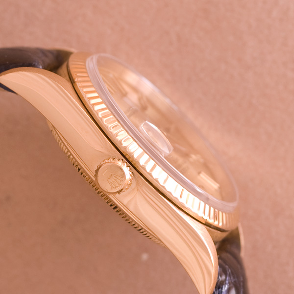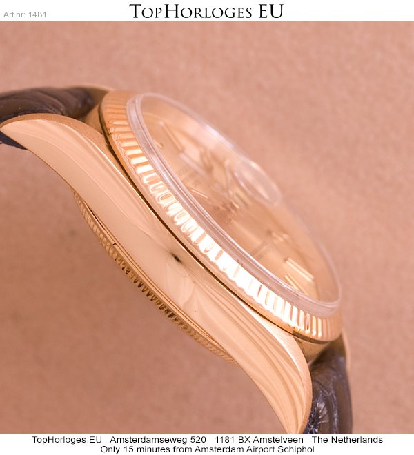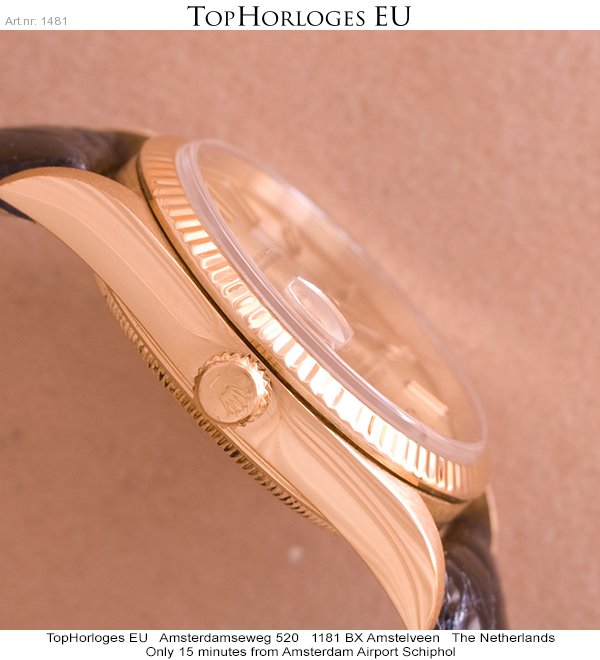 In een goede staat verkeerende gouden Rolex Date Just met leren band.