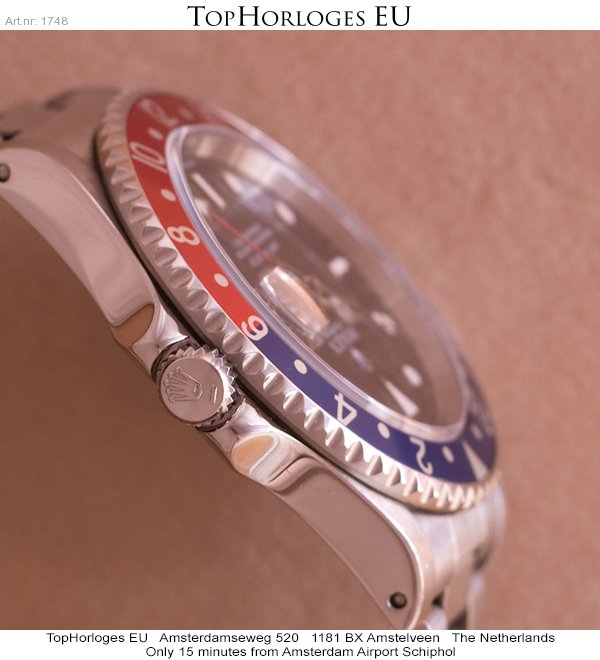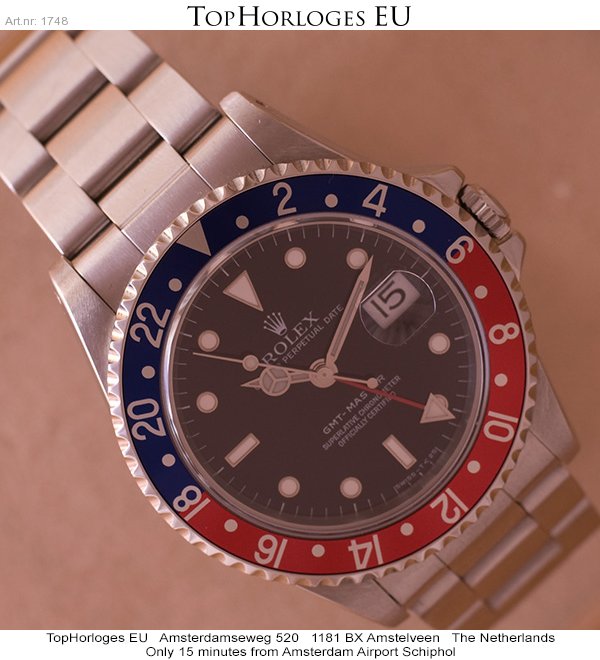 Deze stalen Rolex Gmt, model 16700 , komt uit 1998 en is werkelijk in nieuw staat. Geheel compleet met doos en bijbehorende papieren, certificaat en nog het originele aankoop bewijs….