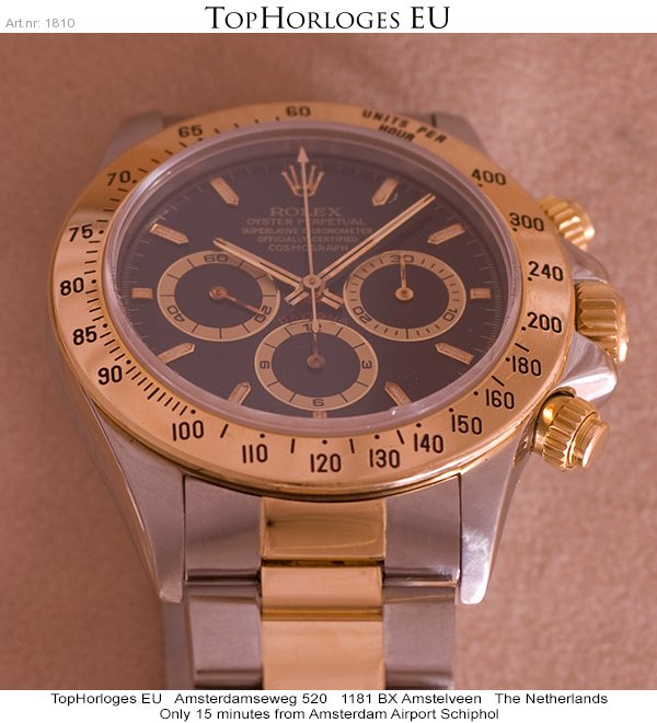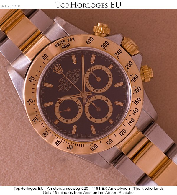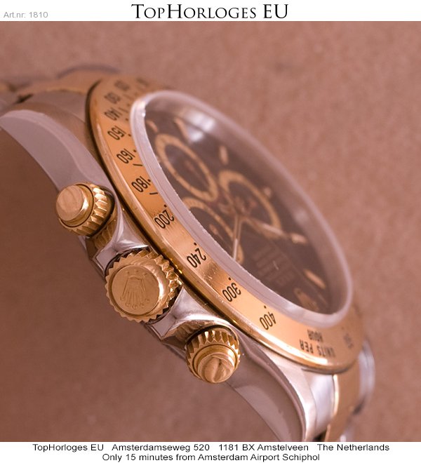 Een goud met stalen Rolex Daytona "Zenith ". Deze chronograaf is in een prima staat geheel compleet met doos en certificaat.