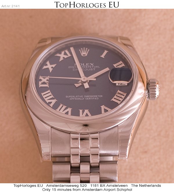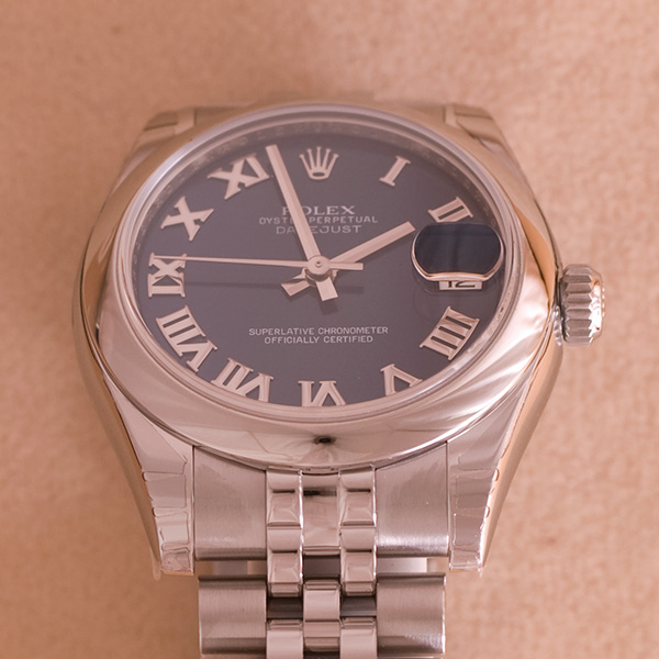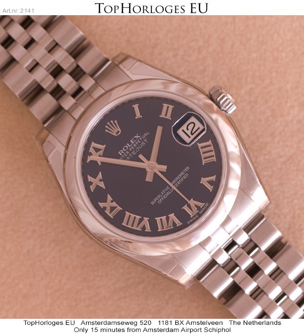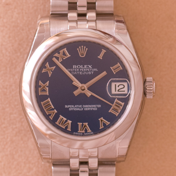 Een nieuwe Rolex Lady Date just 31mm in het staal met stalen jubileum band.