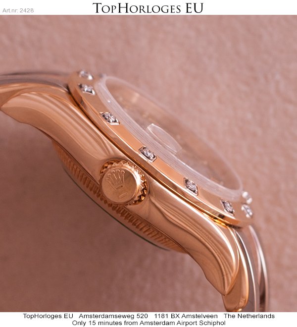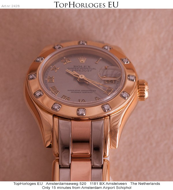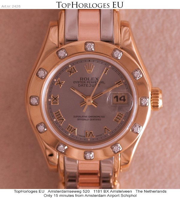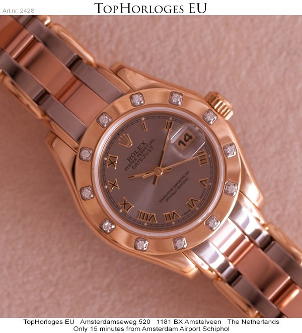 Ee zeer mooie Rolex lady datejust Pearlmaster Tridor met 3 kleuren gouden band en originele met 12 briljanten in de lunette. (ook bekend onder model 80318).