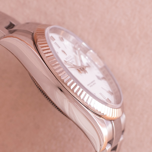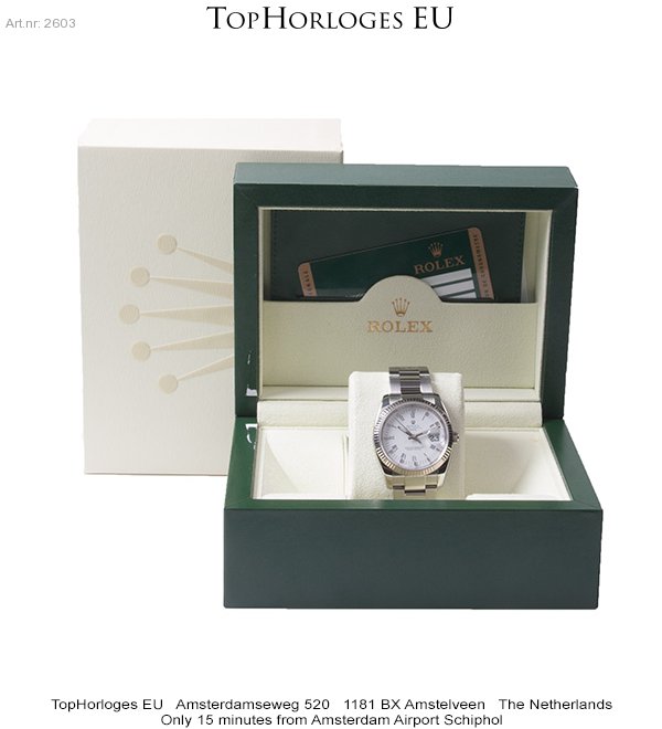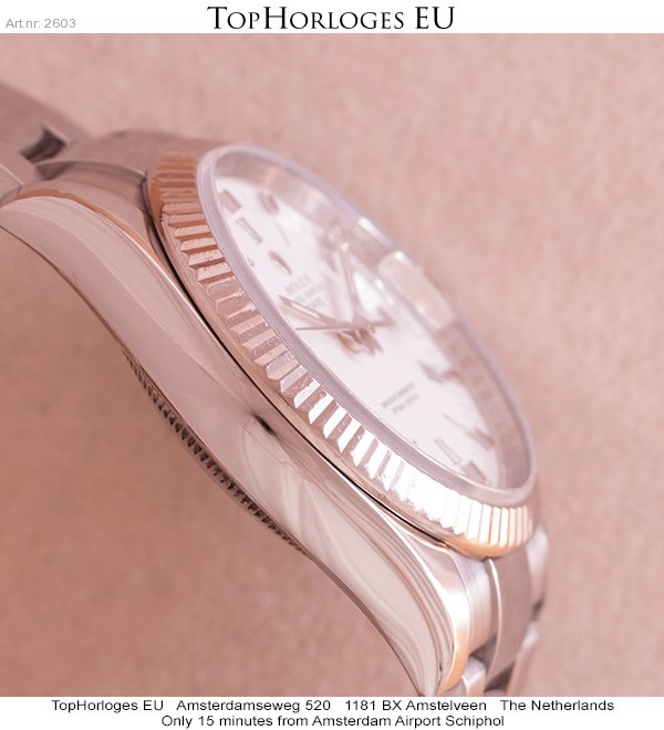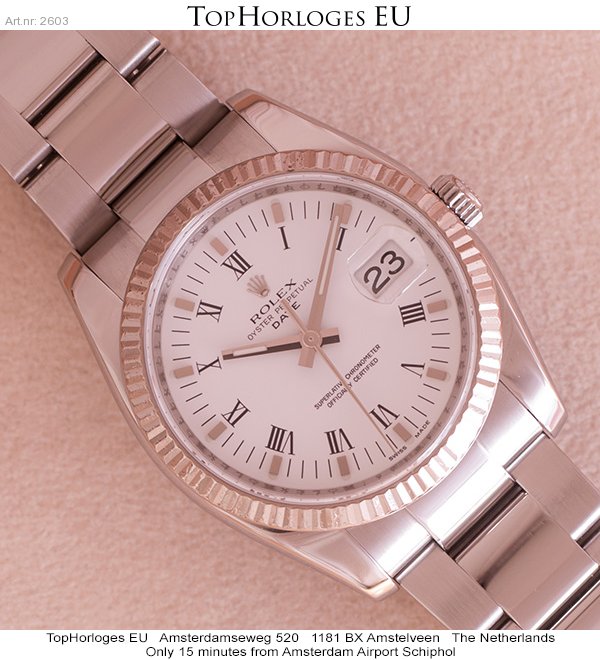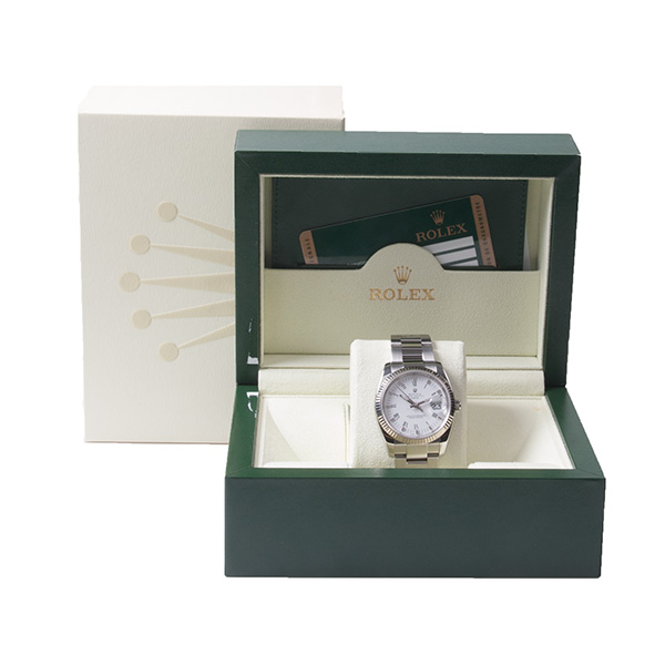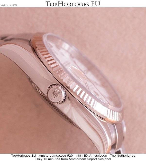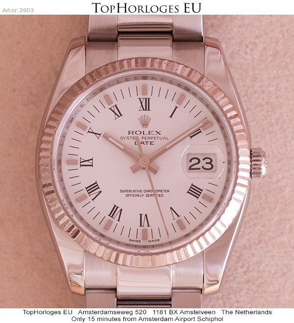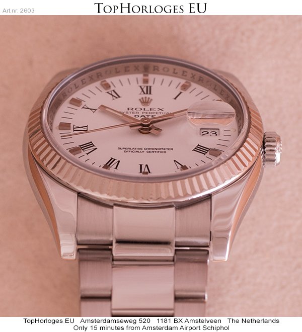 Een weinig gedragen, rolex date in het staal met witgouden lunette.