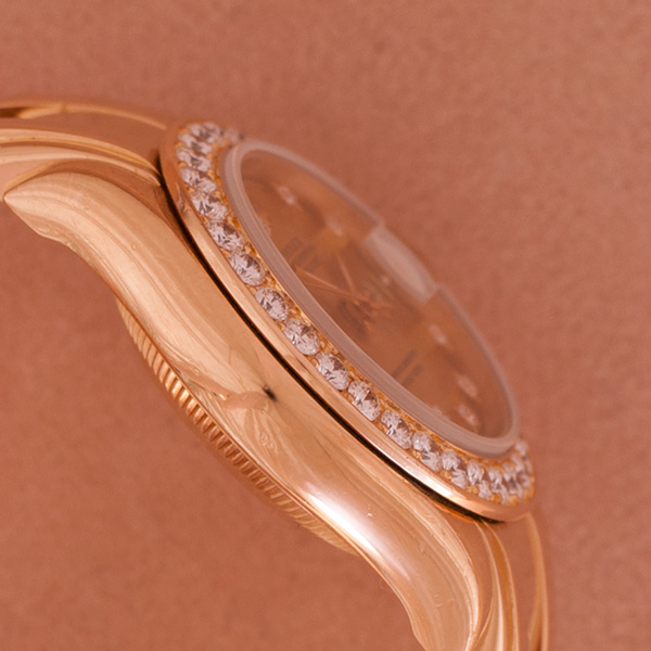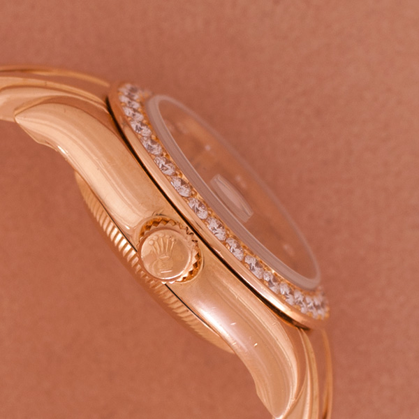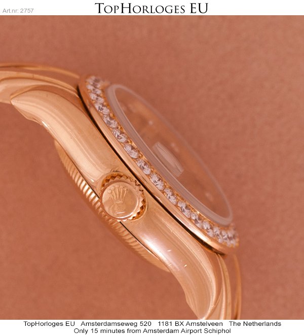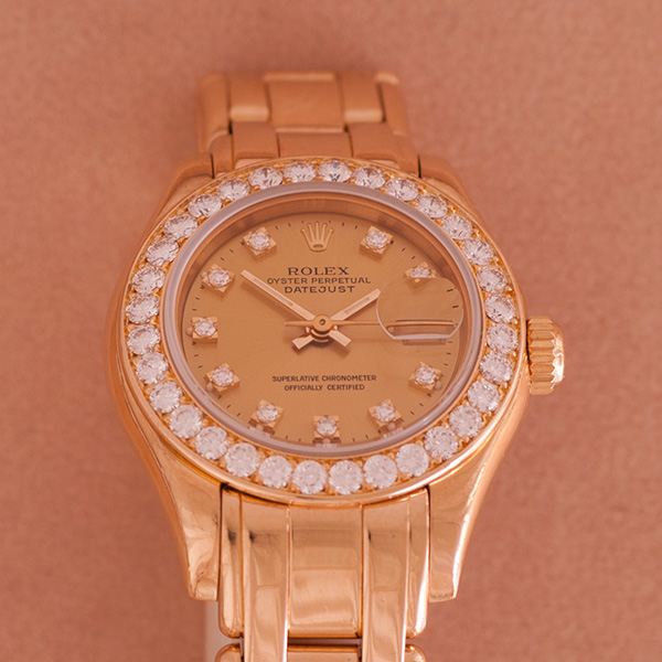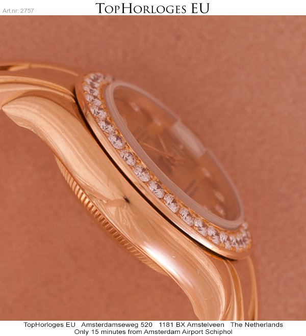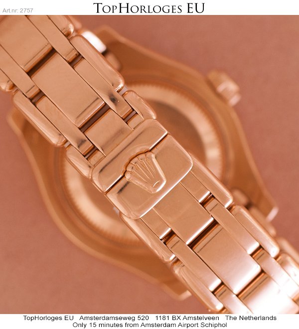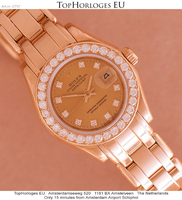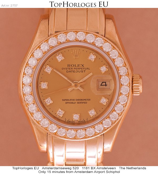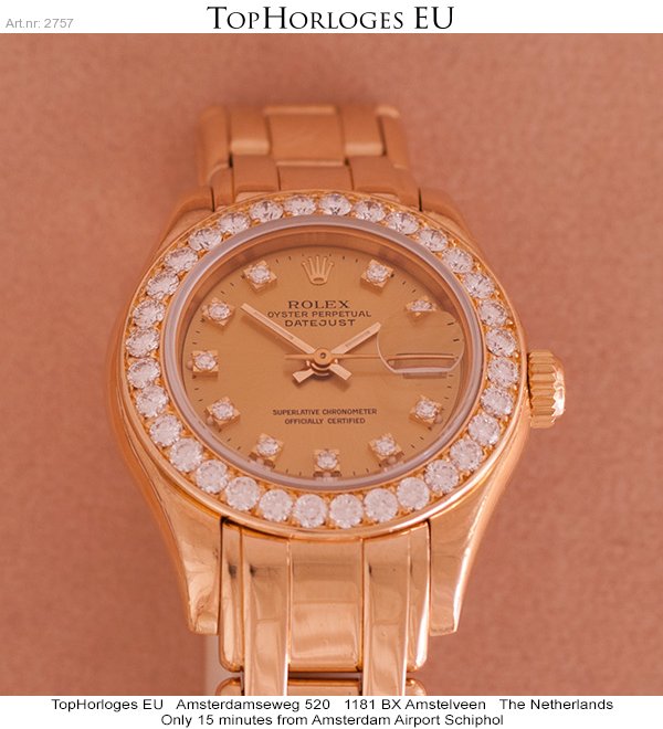 Een zeer mooie Rolex lady datejust Pearlmaster met gouden band en originele met briljant bezette lunette.