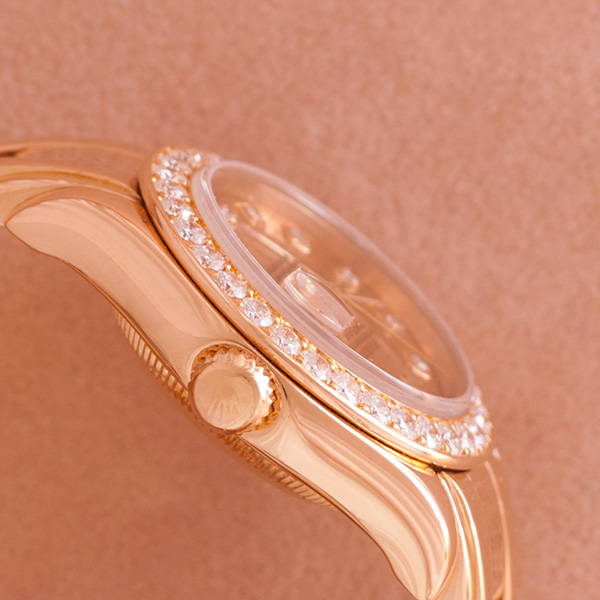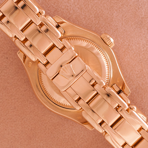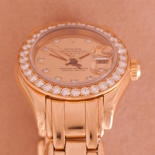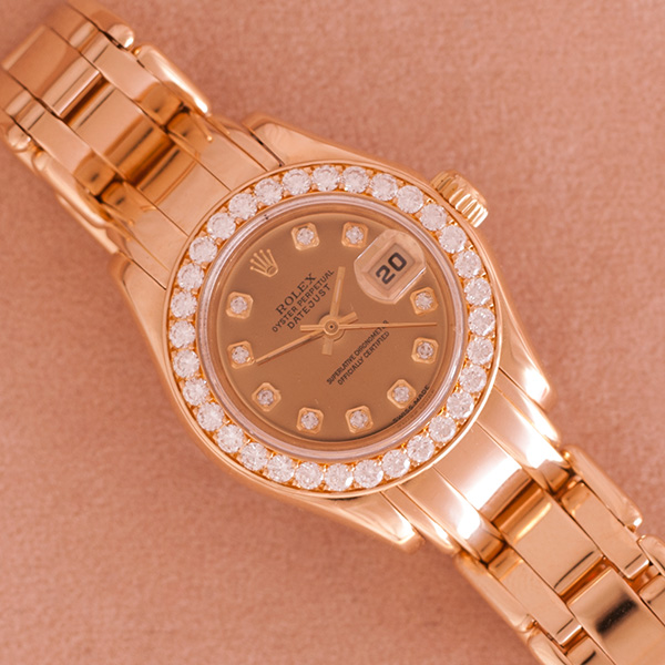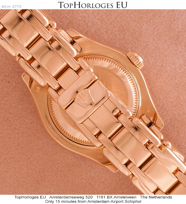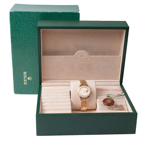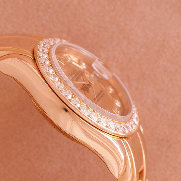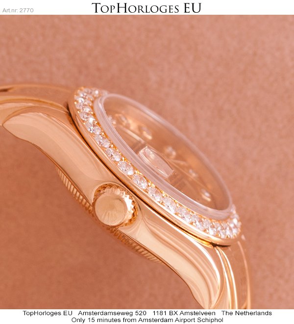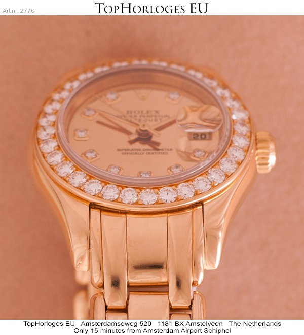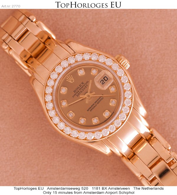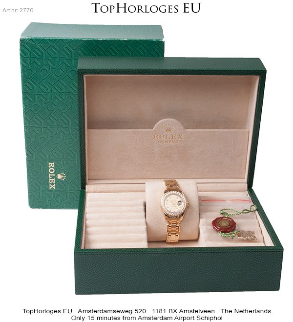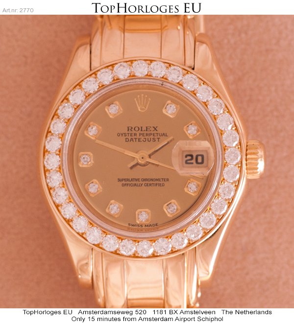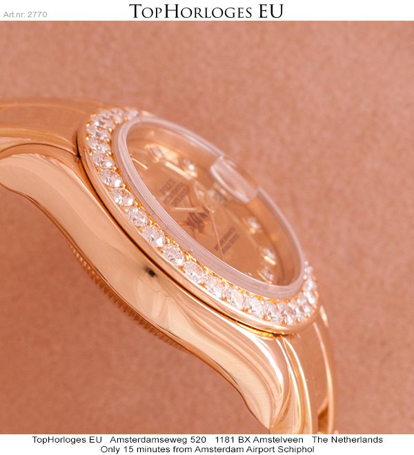 Een zeer mooie Rolex lady datejust Pearlmaster met gouden band en originele met briljant bezette lunette.