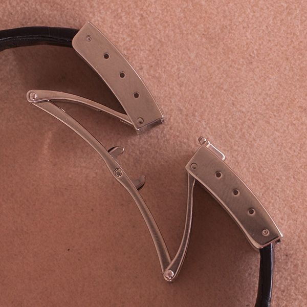 Zwart ledreen band met witgouden vouwsluiting