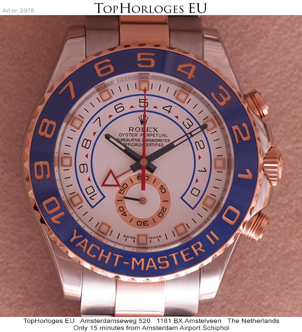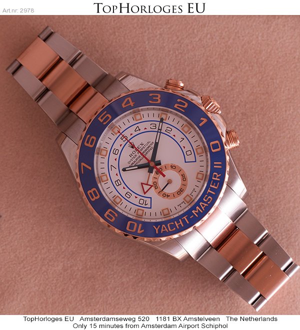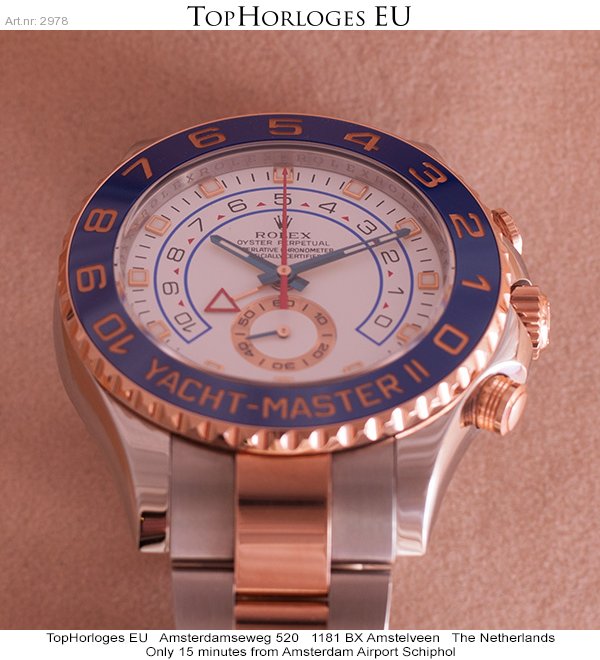 Een zeer weinig gedragen rozegoud met stalen Rolex Yacht-Master II. Deze nieuwste uitvoering is geheel compleet met doos en papieren (2013DE)