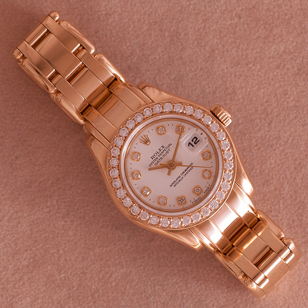 Een zeer mooie Rolex lady datejust Pearlmaster met gouden band.