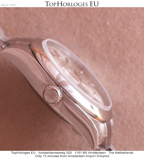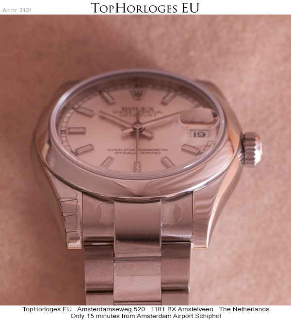 Een nieuwe stalen Rolex Lady Date just 31mm met stalen oyster band.