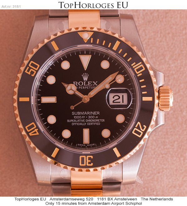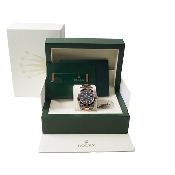 Een nieuwe, ongedragen goud-stalen Rolex Submariner.