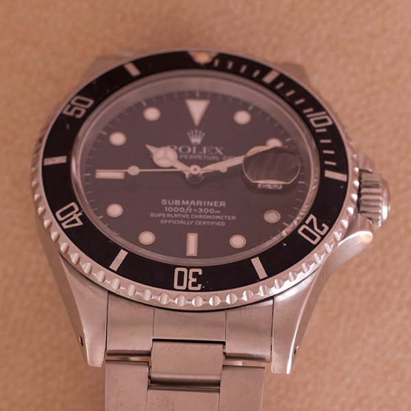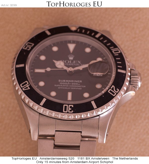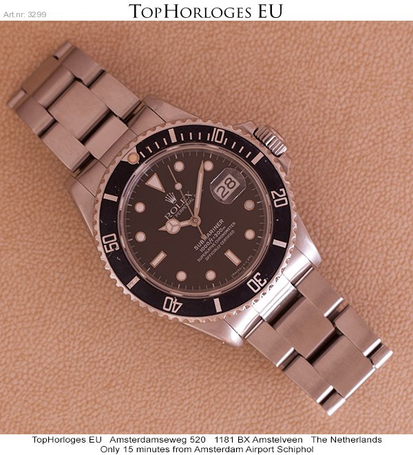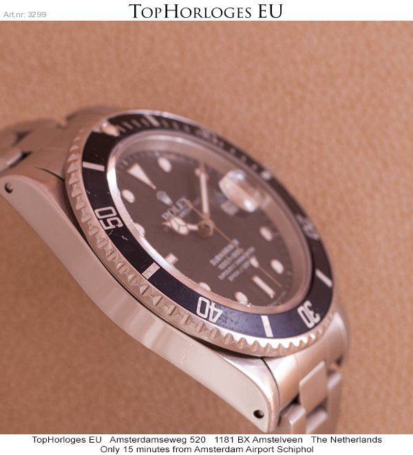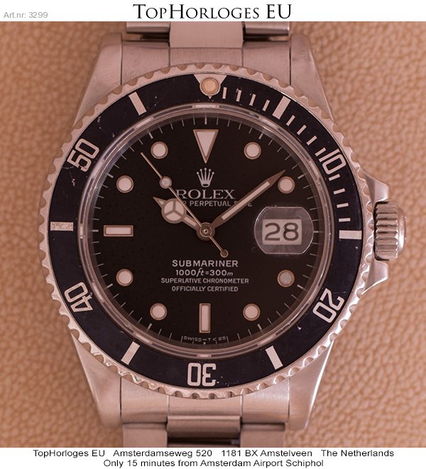 Een stalen Rolex Submariner, deze " youngtimer " uit de jaren 80 heeft een zeer weinig voorkomende referentie nl. 168000. (slechts 9 maanden geproduceerd). Ondanks z'n middelbare leeftijd is het nog in een prima staat…..