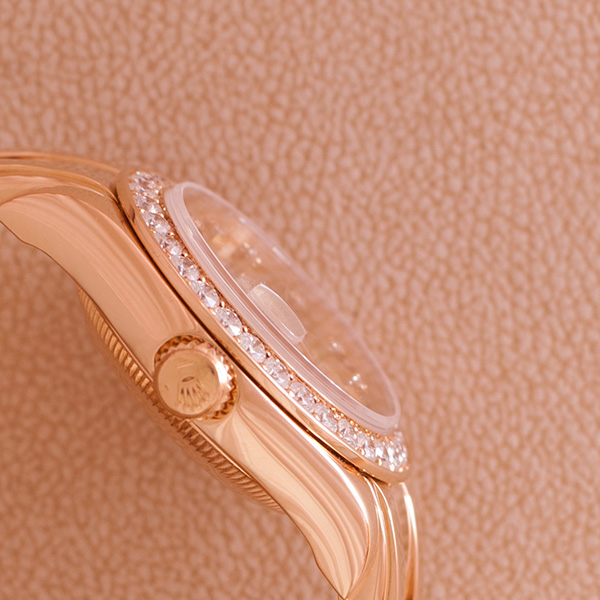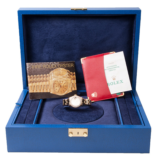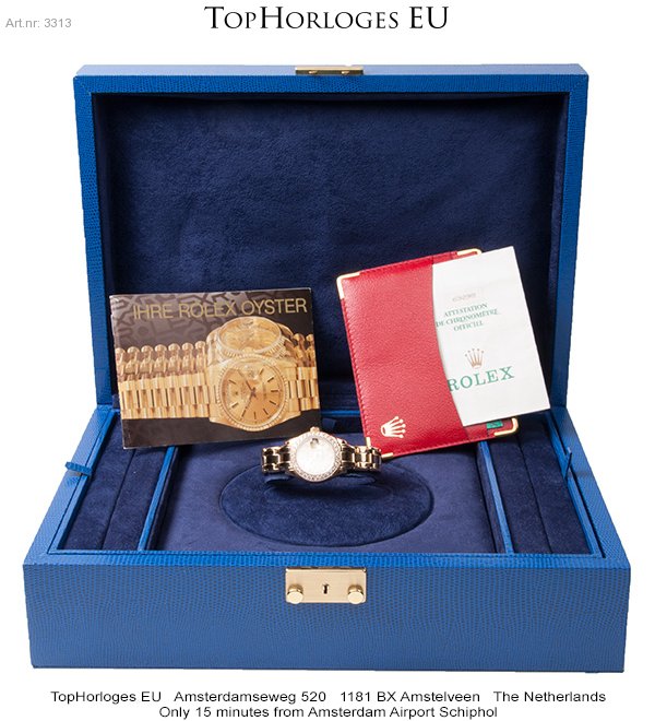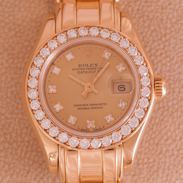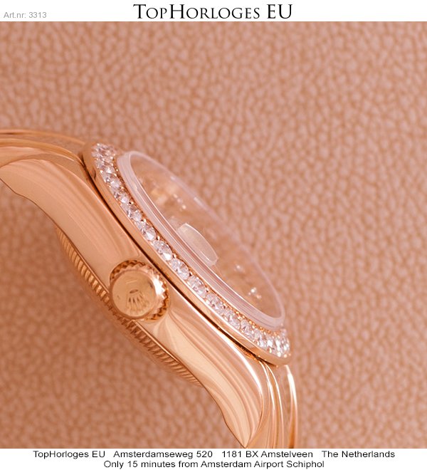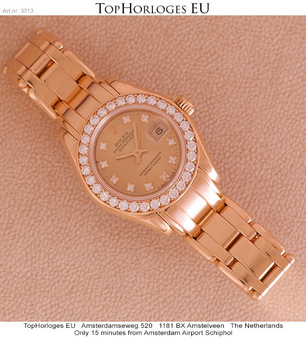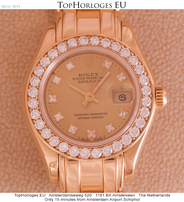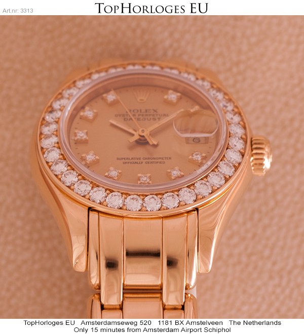 Een zeer mooie Rolex lady datejust Pearlmaster met gouden band en originele met briljant bezette lunette.