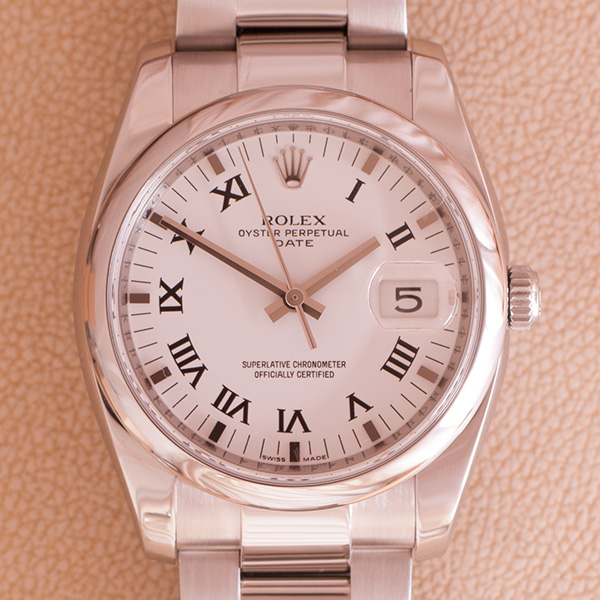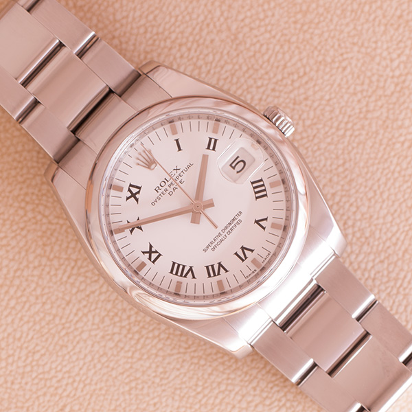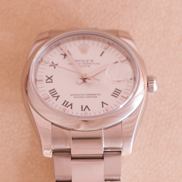 Een prachtige stalen Rolex Date, deze Mid-Size is in een mooie, weing gedragen staat.