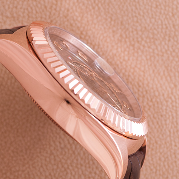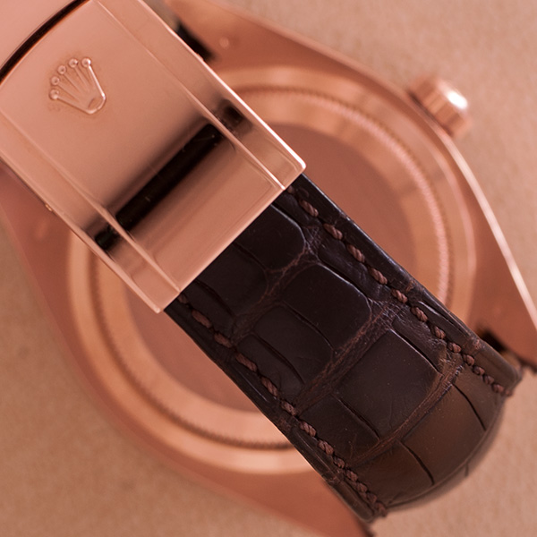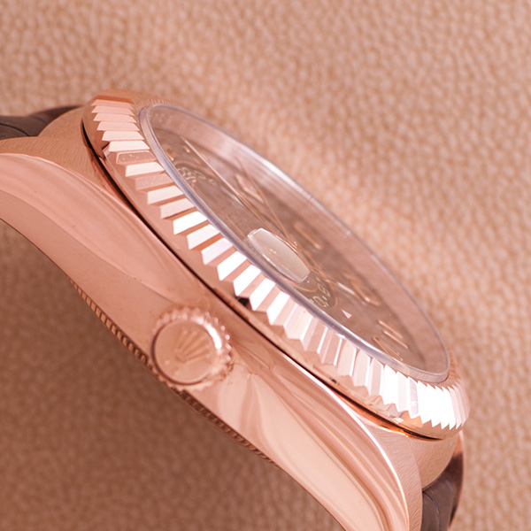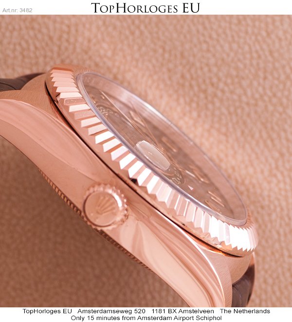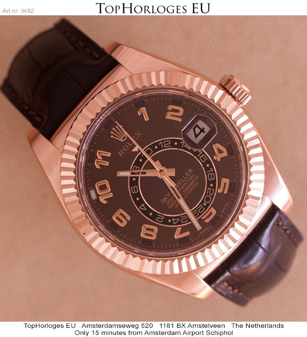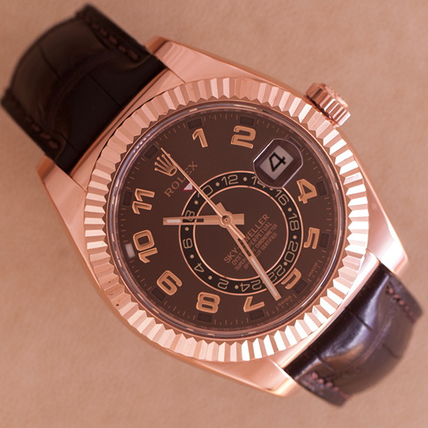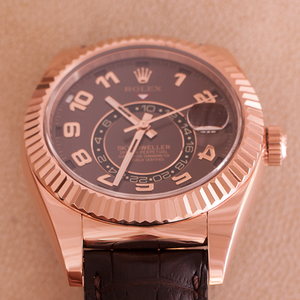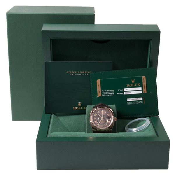 An almost un-worn Rolex Skydweller, this rosegold version is complete with box and papers ( EU 2014 )