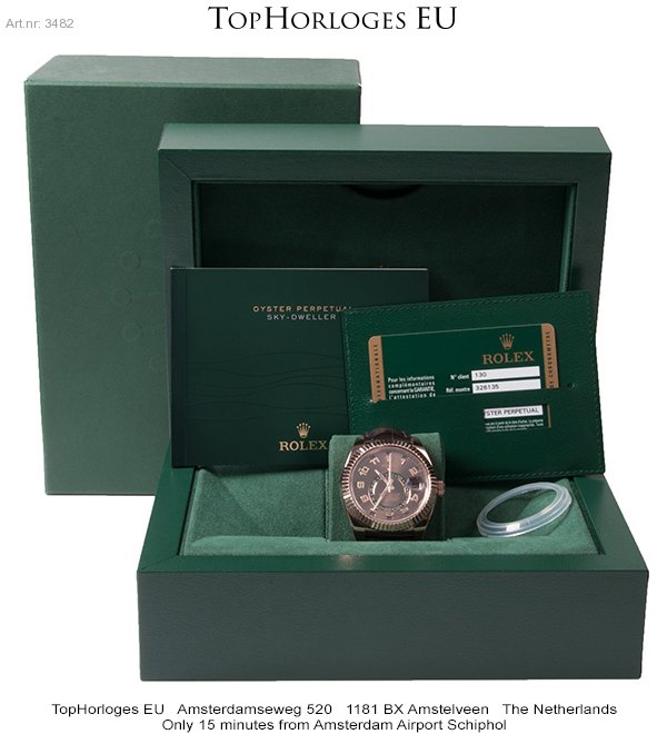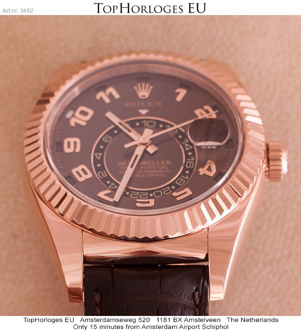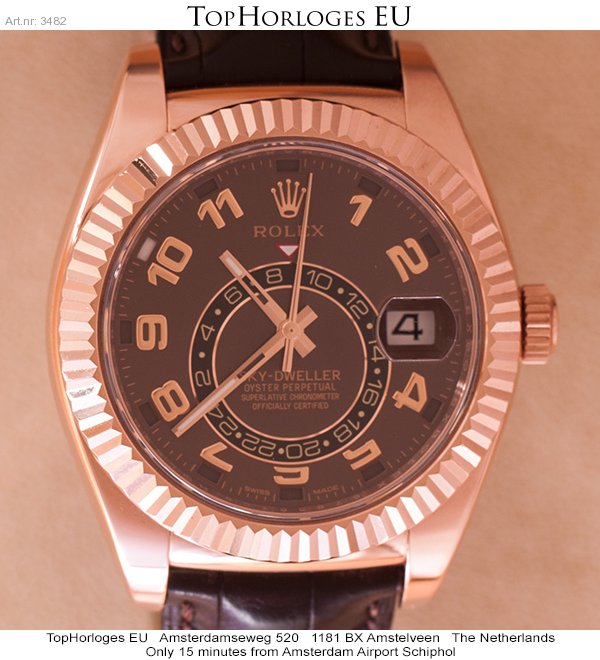 Een zo goed als ongedragen Rolex Sky-Dweller in het rosegoud. Dit prachtige stukje Zwitserse techniek is geheel compleet met doos en papieren (2014)