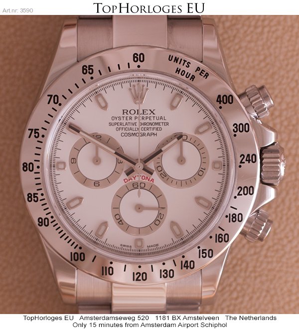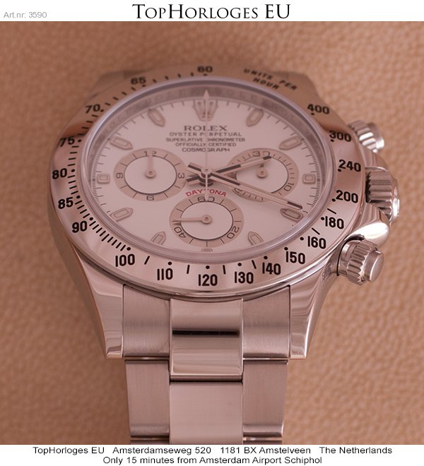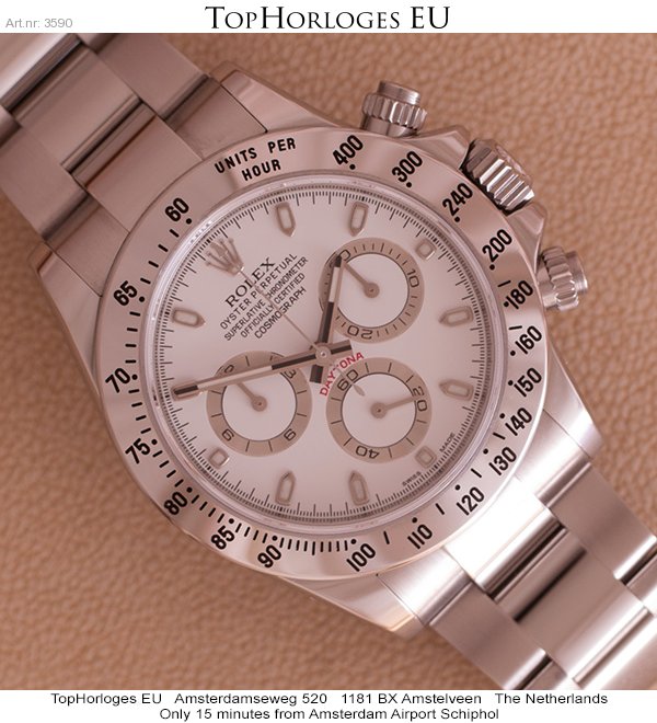 Deze zogoed als ongedragen stalen Rolex Daytona met witte wijzerplaat, is in een prachtige staat. Komt kompleet met doos en papieren(NL 2014)