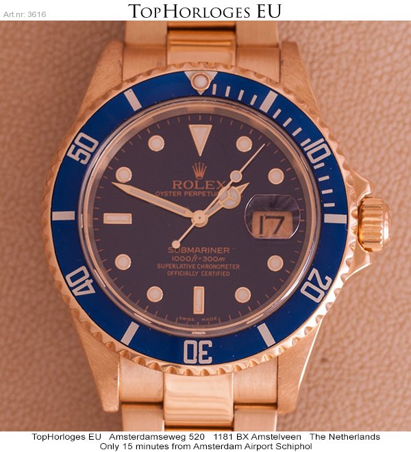 Een prachtige geelgouden Rolex Submariner, deze 18krt gouden duiker is in een schitterende staat. Komt geheel compleet met doos en papieren.