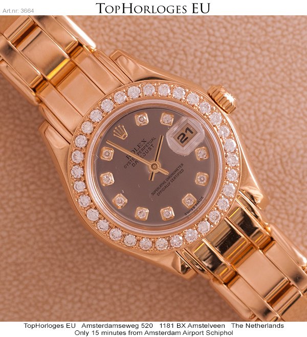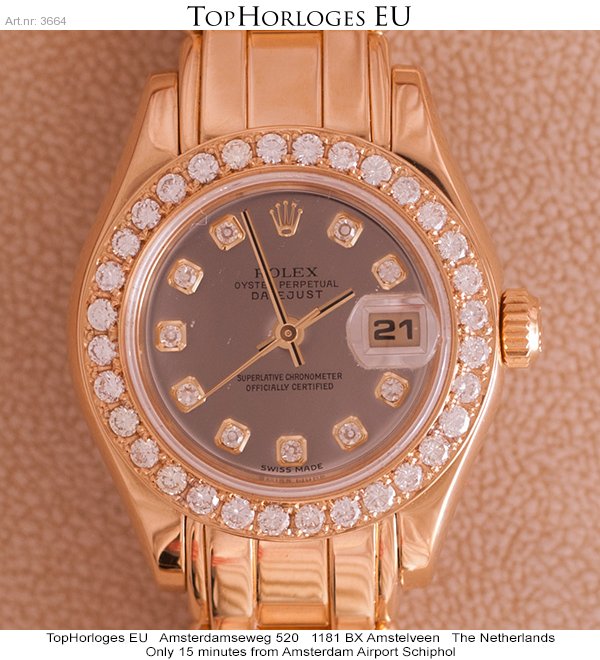 Een zeer mooie Rolex lady datejust Pearlmaster met gouden band.