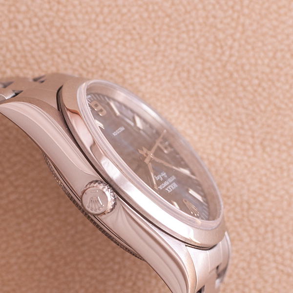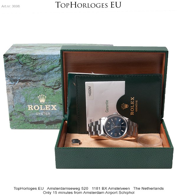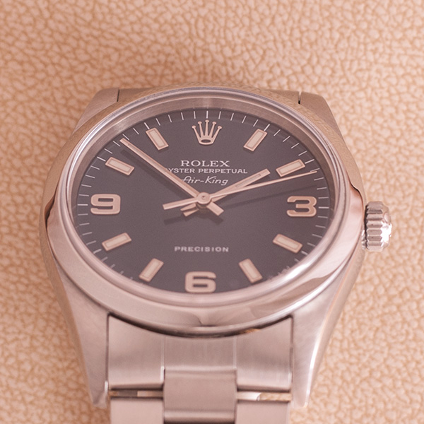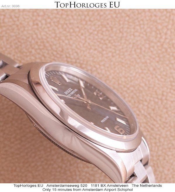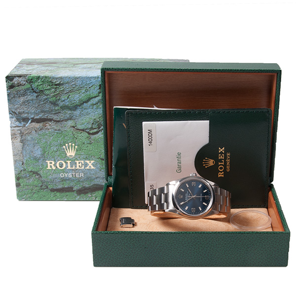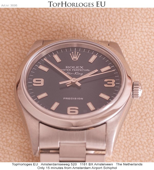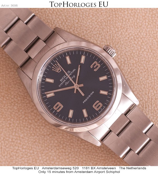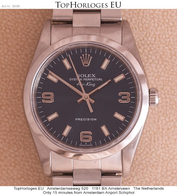 Een mooie stalen Rolex Airking met stalen Oyster band, donker blauwe wijzerplaat.