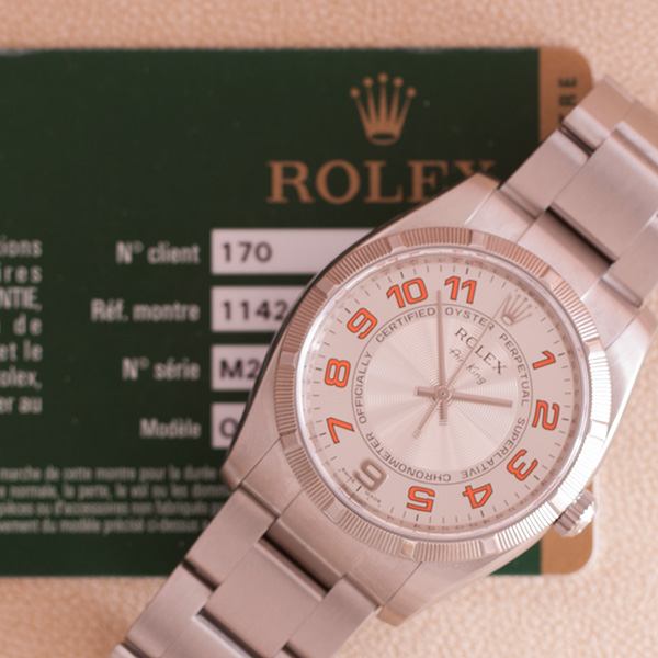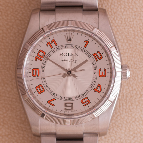 Een zeer mooie stalen Rolex Airking met stalen Oyster band uit 2008.