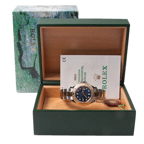 An very nice Rolex YachtMaster Midsize, this gold/steel version is complete with box and papers.