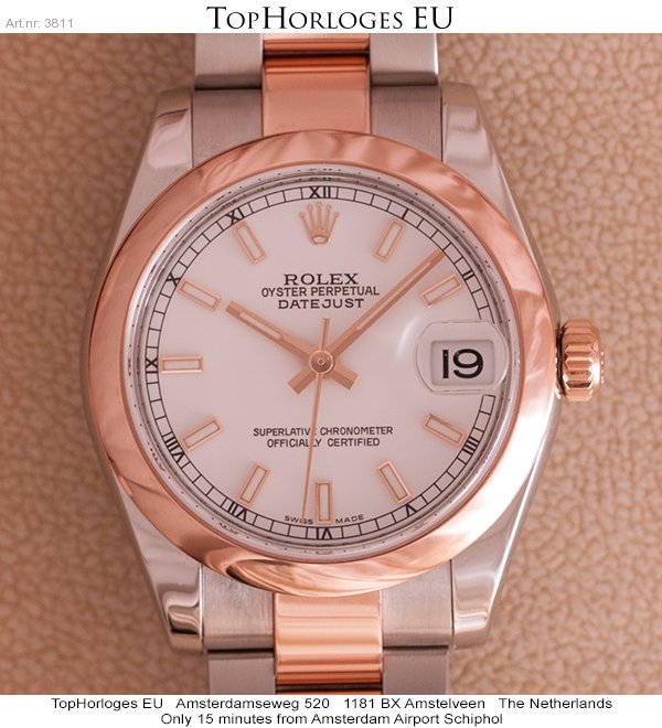 Een schitterende dames Rolex datejust, 31mm rozegoud met staal. Deze weinig gedragen midsize uitvoering is in een prachtige staat.