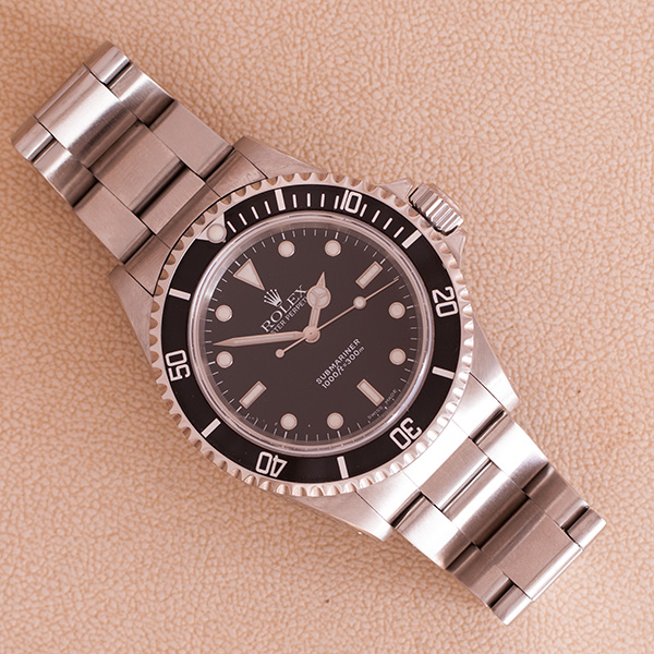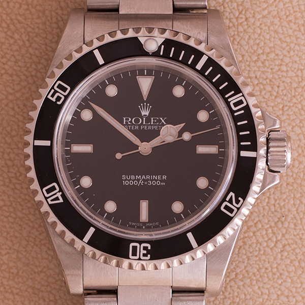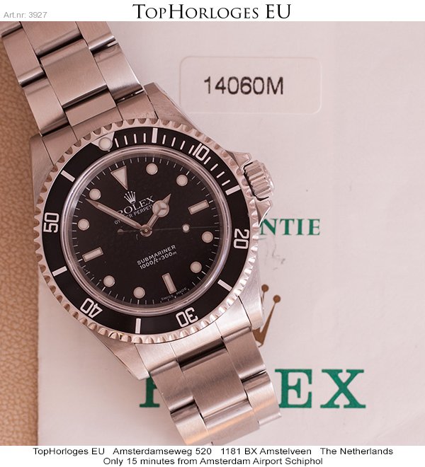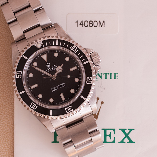 An desirebe Rolex 14060M No-Date. This steel Submariner comes complete with the box, booklets and the papers. ( 2001 )