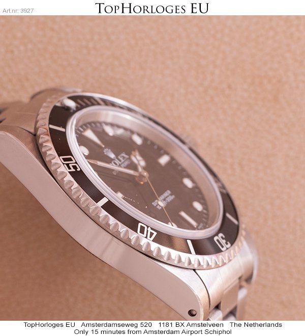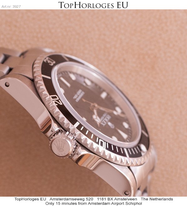 Een stalen Rolex Submariner. Deze, haast legendarische, No-Date uitvoering is in een prima staat. Geheel compleet met doos en papieren. ( 2001 )