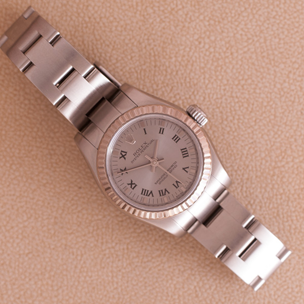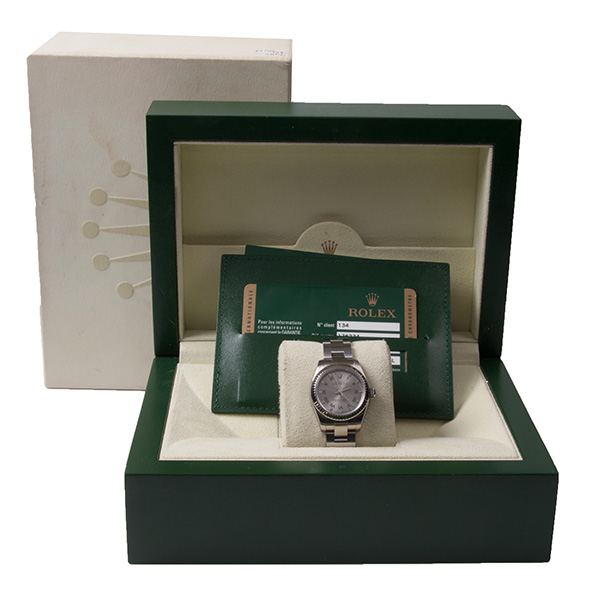 Nice Ladies Rolex Oyster Perpetual. This gorgeous steel version with the white gold bezel is in an very nice condition. Comes complete with the box and the papers.(NL2009)