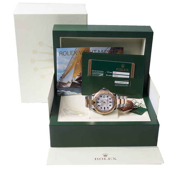 Een zogoed als nieuwe Rolex Yachtmaster in het goud met staal. Dit prachtige