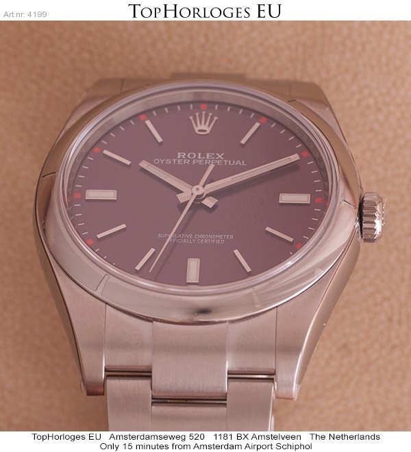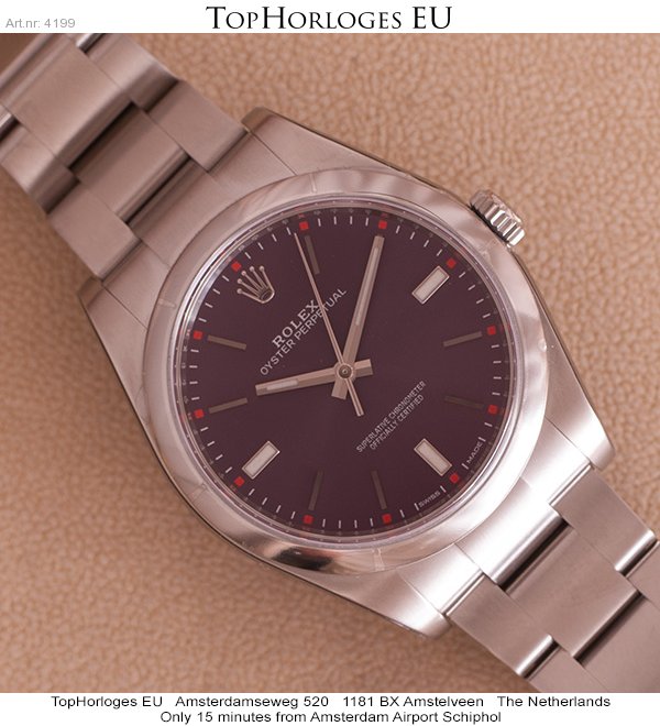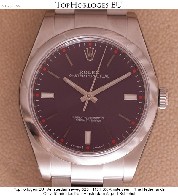 Een nieuwe, ongedragen ( seal ) stalen Rolex, 39mm met prachtige red grape wijzerplaat. Doos & Papieren. ( 2015NL )