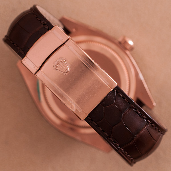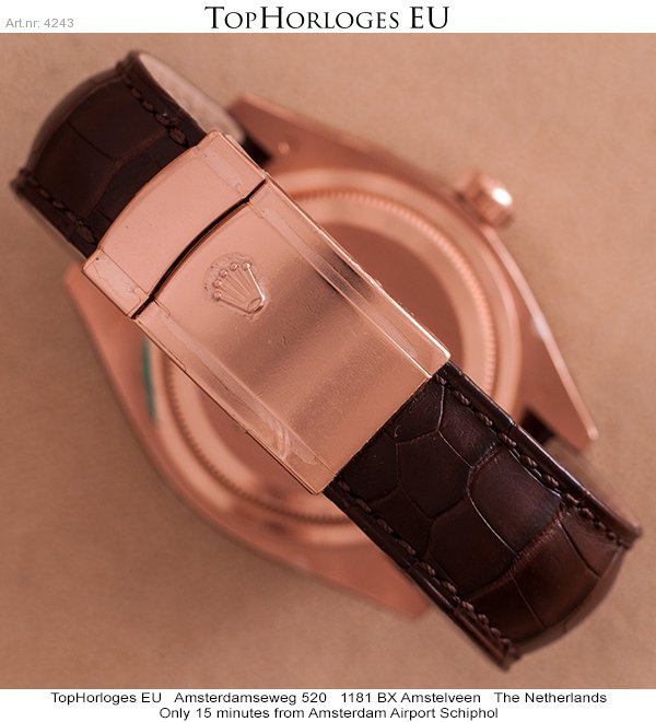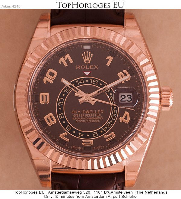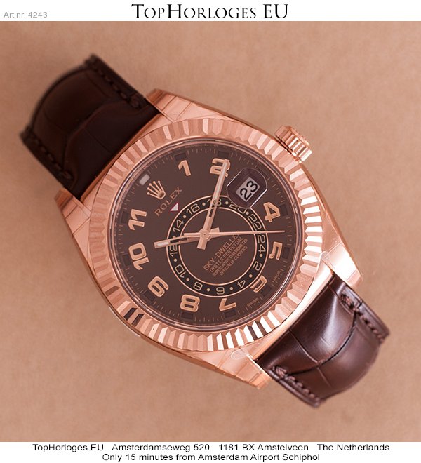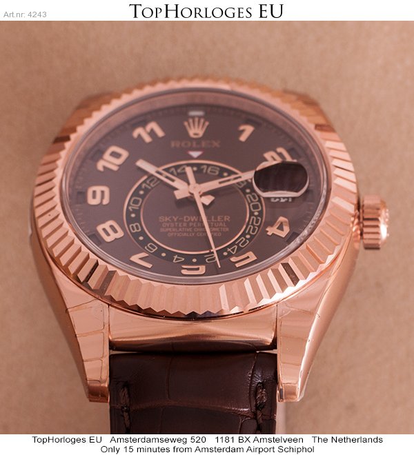 Brand new Rolex Sky-Dweller in rosegold with leather starp, chocolate dial