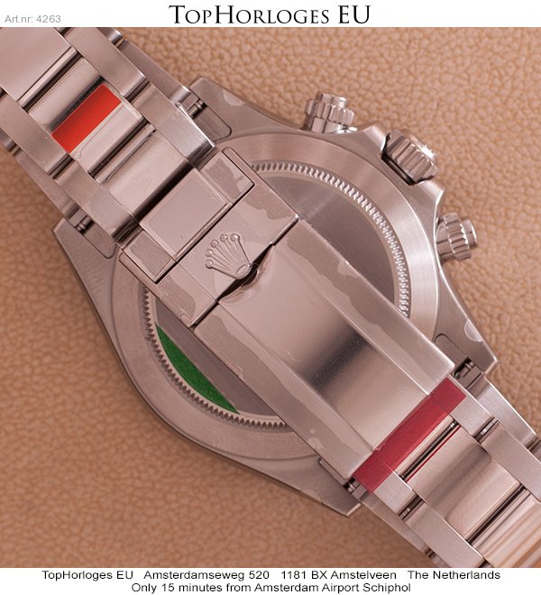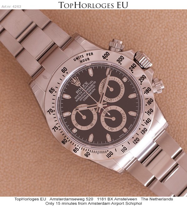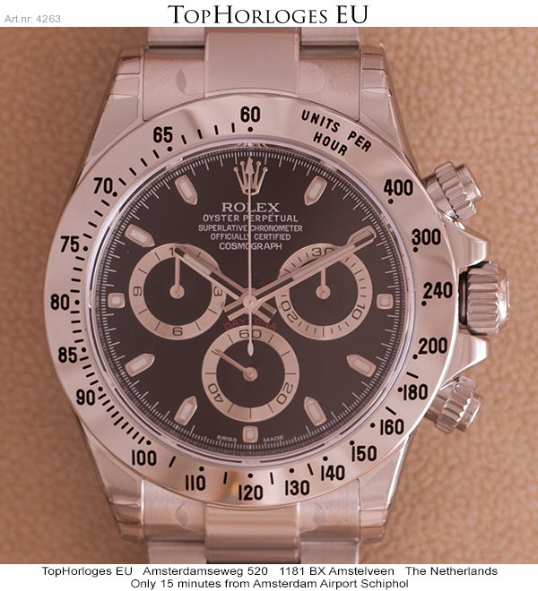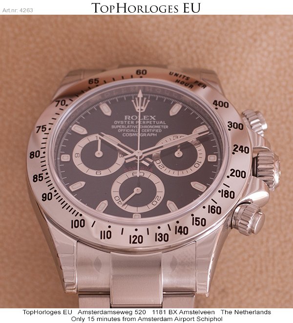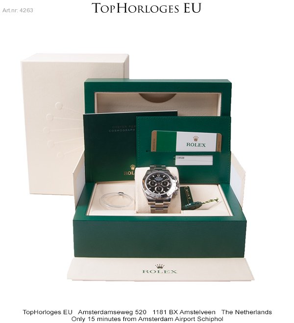 Een nieuwe stalen Rolex Daytona ( new seal )met zwarte wijzerplaat.
