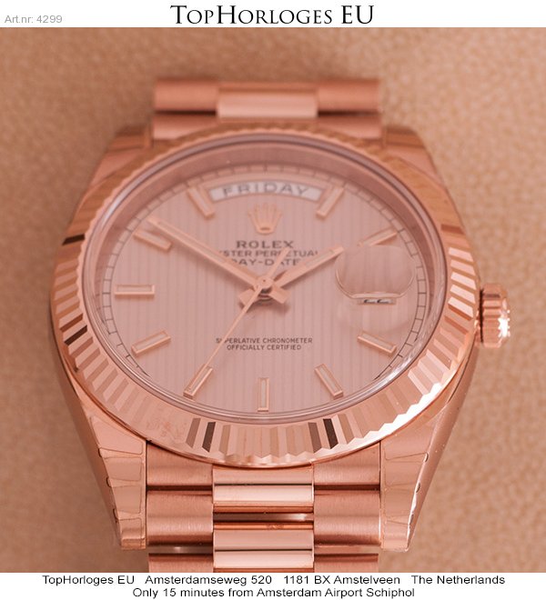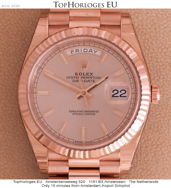 Gorgeous Rolex Day-Date in rosegold. This stunning latest 40mm version has only been worn an coulpe of times.