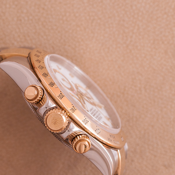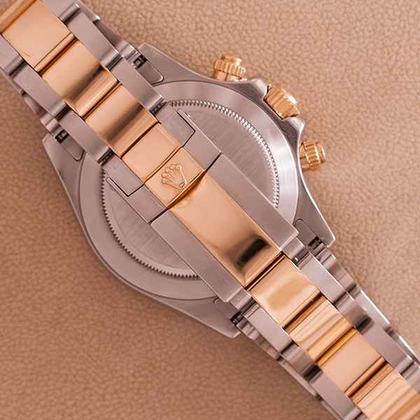 Gorgeous gold and steel Rolex Daytona. This stunning chronograph comes with the very desirable Arabic dial.