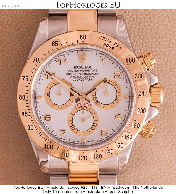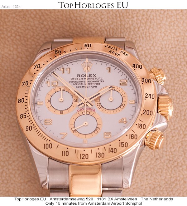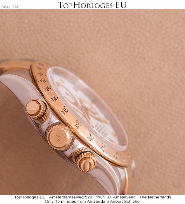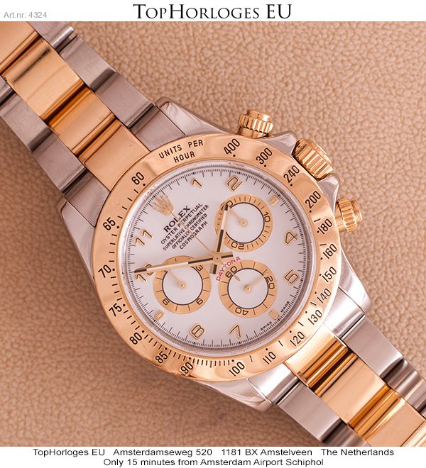 Een zeer mooie goud-stalen Rolex Daytona. Deze Zwitserse chronograaf heeft een prachtige wijzerplaat, en is in een weinig gedragen staat.