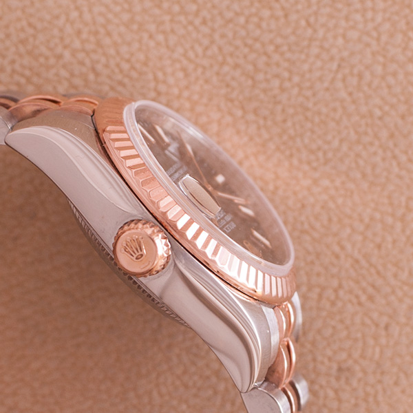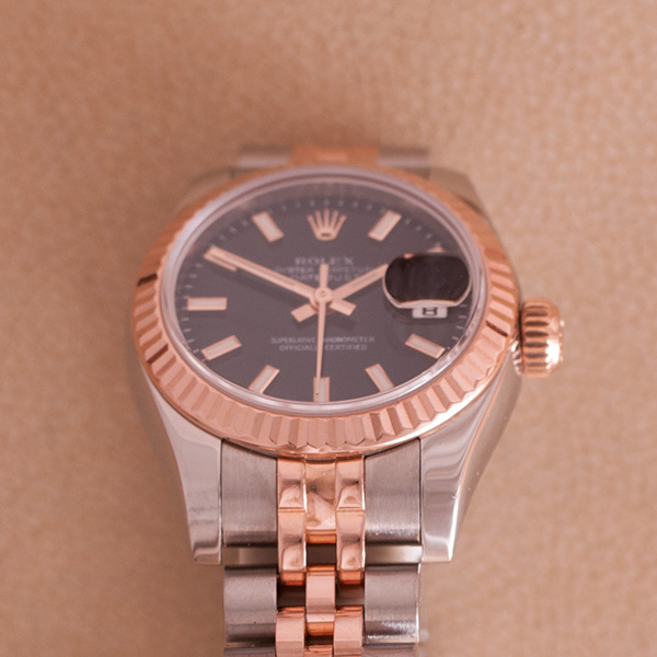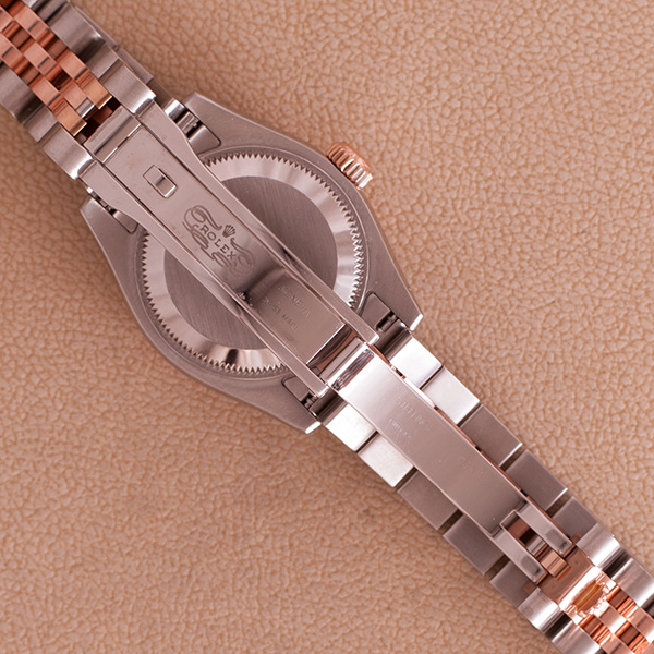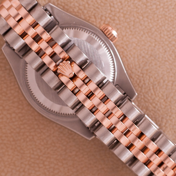 Gorgeous rose gold and steel Rolex Datejust. This latest version is stunning and super complete with box and papers.(2011NL)