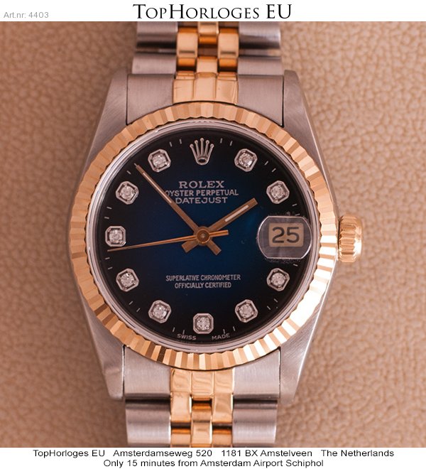 Een schitterende dames Rolex datejust, 31mm goud met staal. Deze weinig gedragen midsize uitvoering is in een prachtige staat.