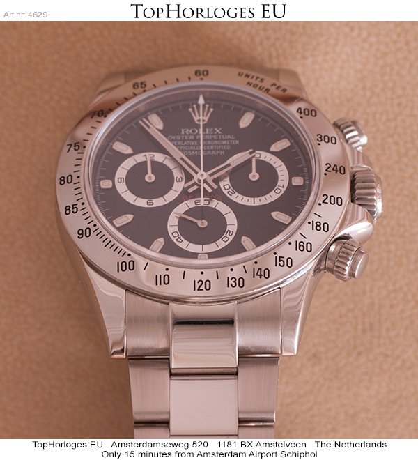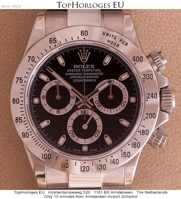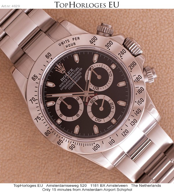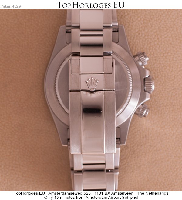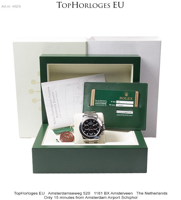 Een zeer weinig gedragen Rolex Daytona met zwarte wijzerplaat. Deze stalen uitvoering is in een schitterende staat.
