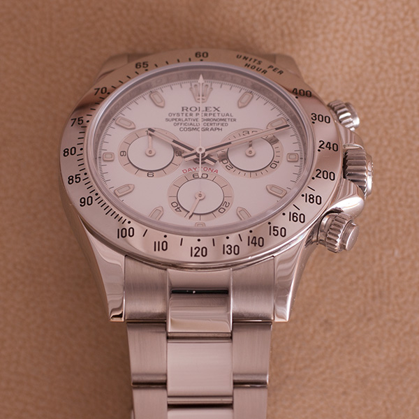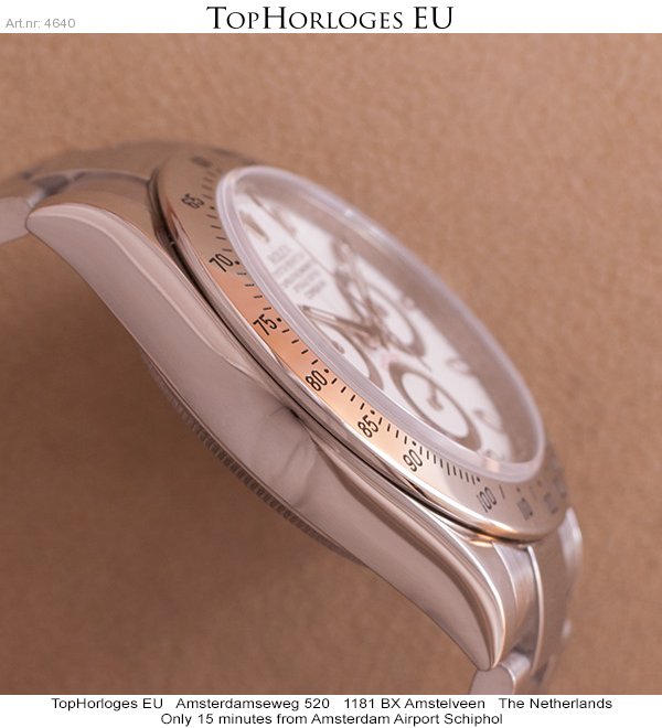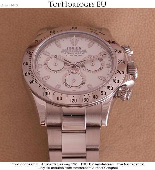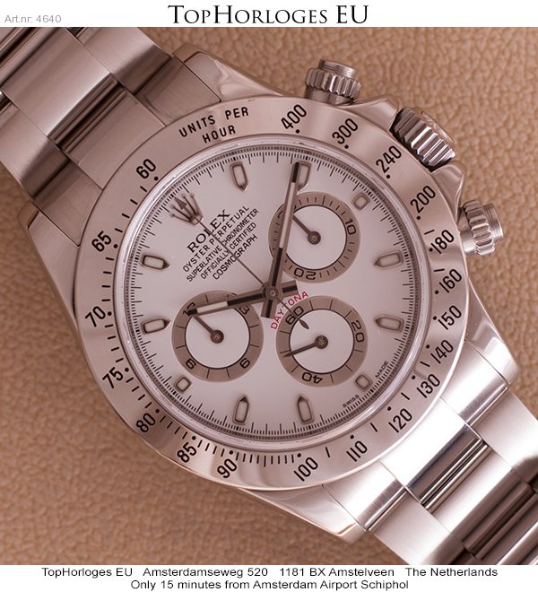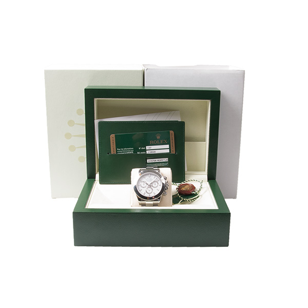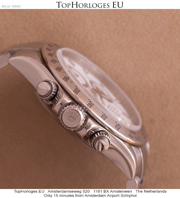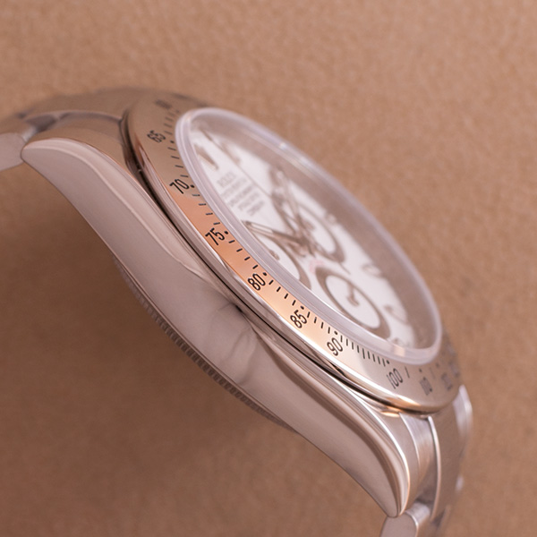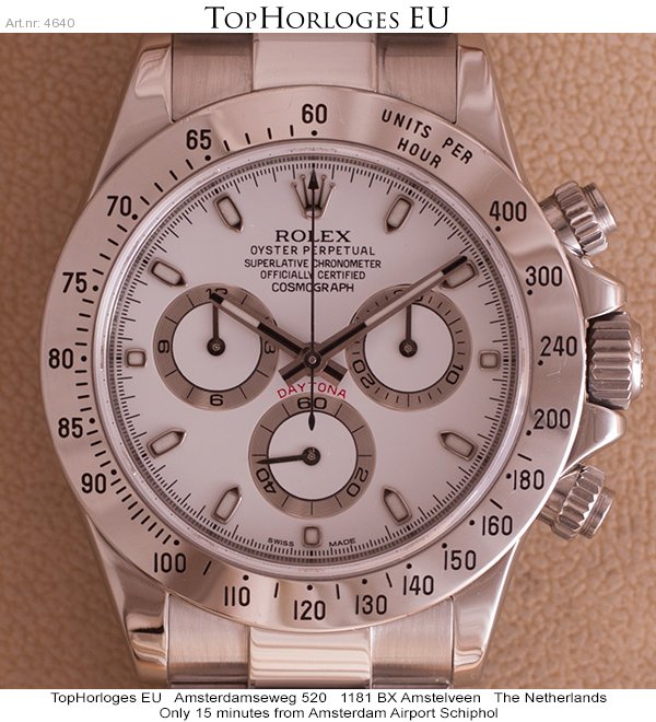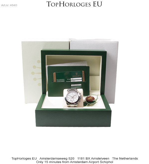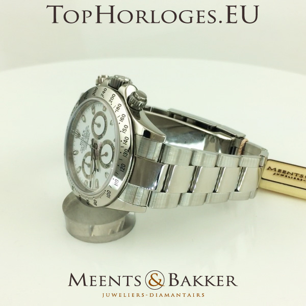 Een zeer weinig gedragen Rolex Daytona met witte wijzerplaat. Deze stalen uitvoering is in een schitterende staat.