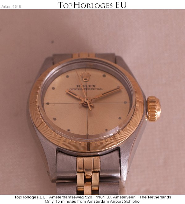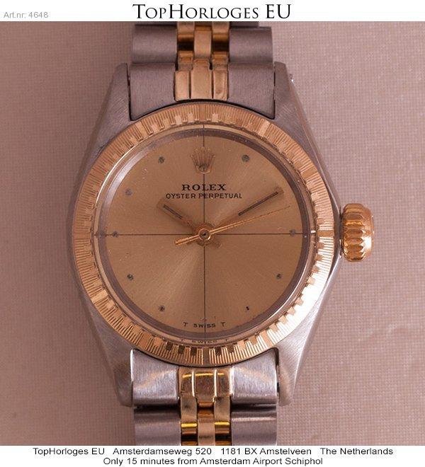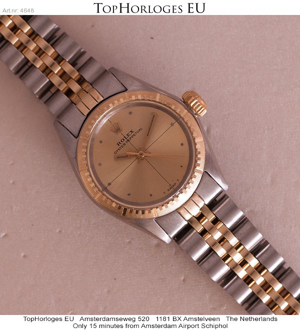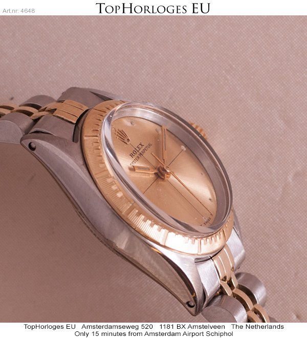 Een goud met stalen dames Rolex, deze Oyster Perpetual uit de eind jaren 60 met de kenmerkende "Zephyr" wijzerplaat is in een prima algehele staat.