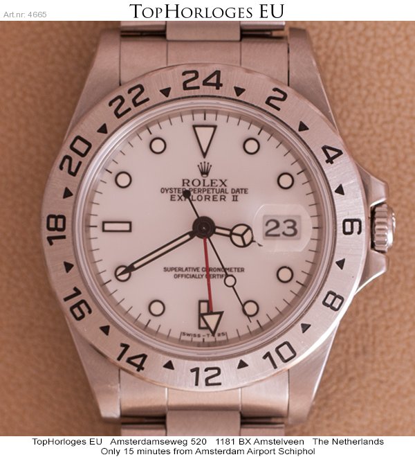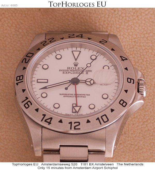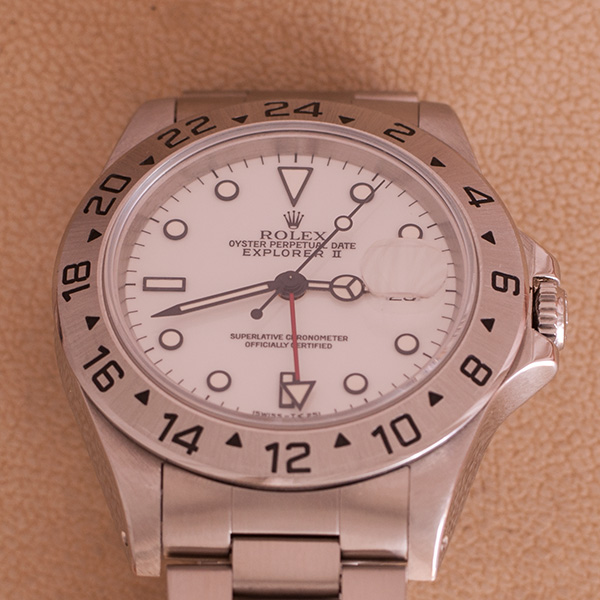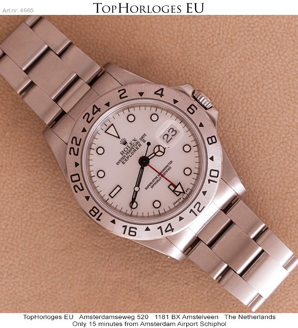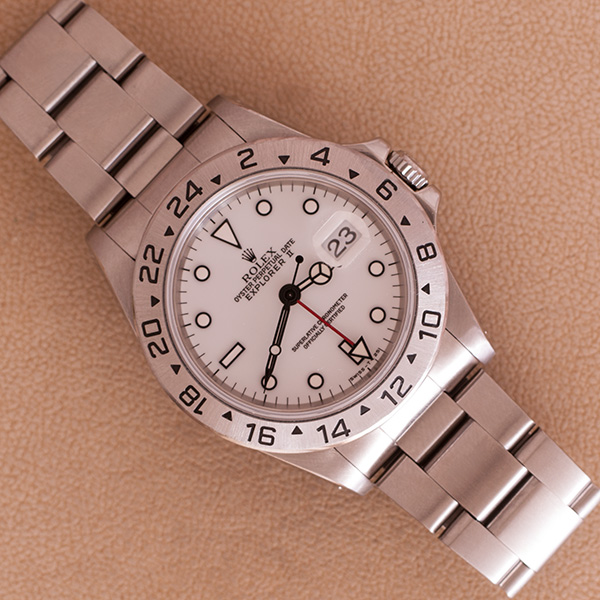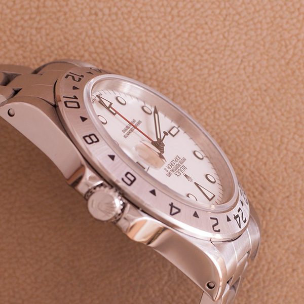 Nice, steel Rolex Explorer 2 with white dial. This dual-time from the mid-90's is in a fine condition.