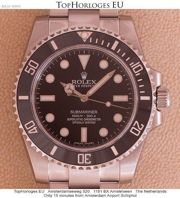 Een nieuwe, ongedragen stalen Rolex Submariner No Date, nieuwe model met ceramische lunette. (new seal).(EU 08/2016)