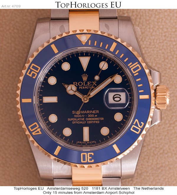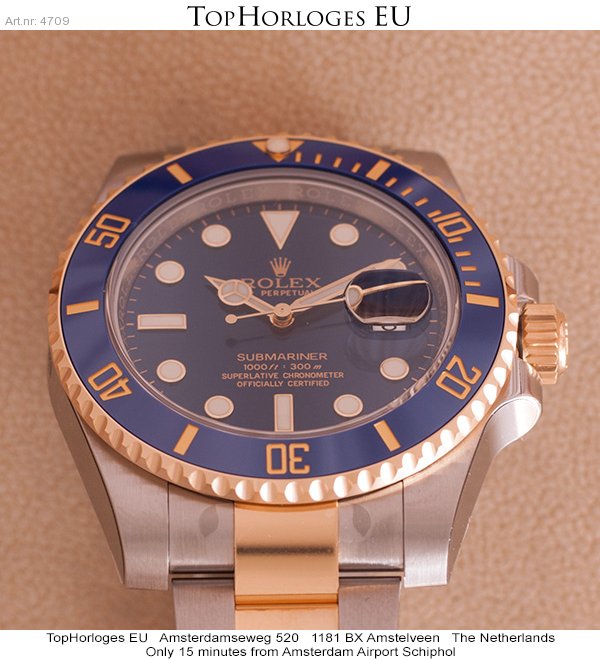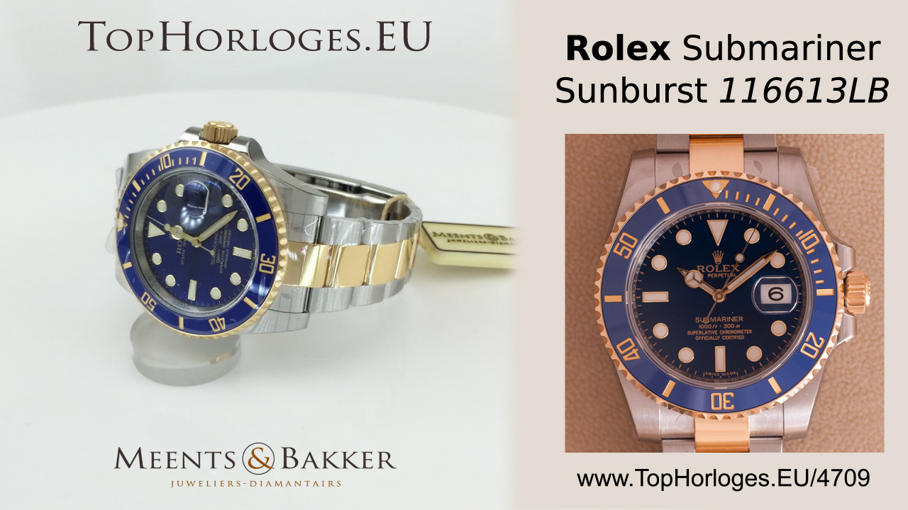 Een nieuwe goud-stalen Rolex Submariner met prachtige blauwe Sunburst wijzerplaat. Kompleet met doos & papieren. (10-2016 EU)