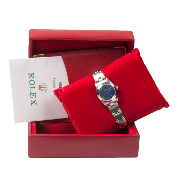 Een weinig gedragen dames Rolex horloge. Deze stalen Oyster uitvoering is in een pracht staat.