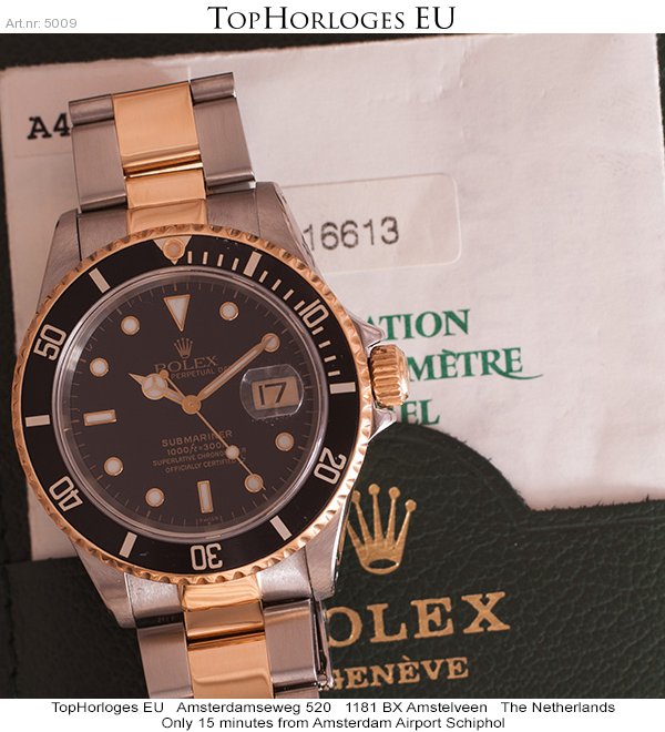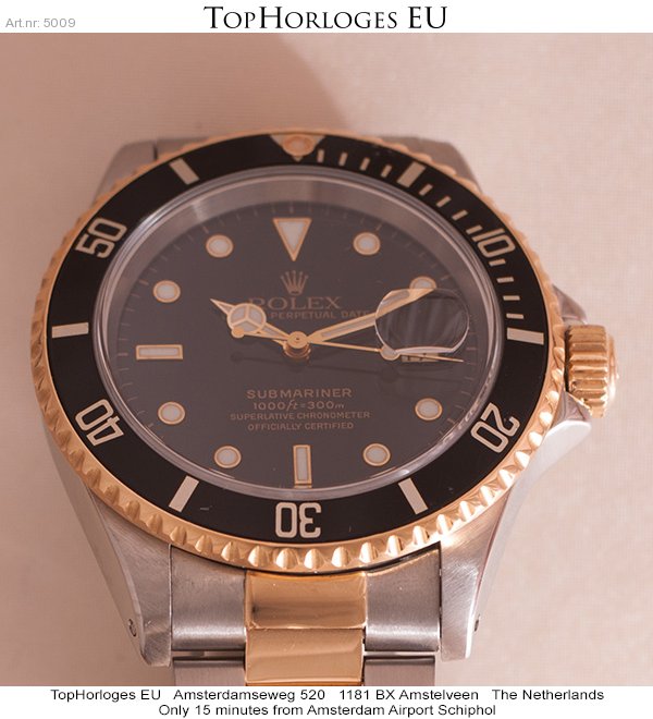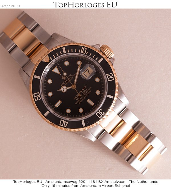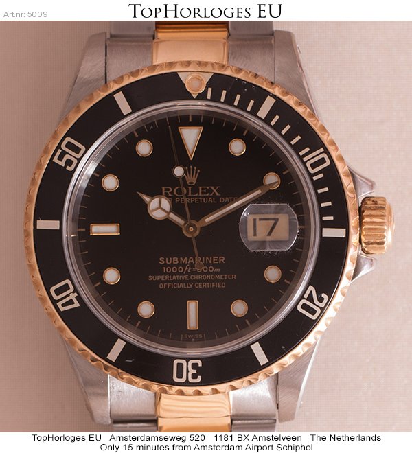 Very desirable Rolex Submariner. This gorgeous goud - steel version with the black "Swiss" only dial, is in an overall very good condition.